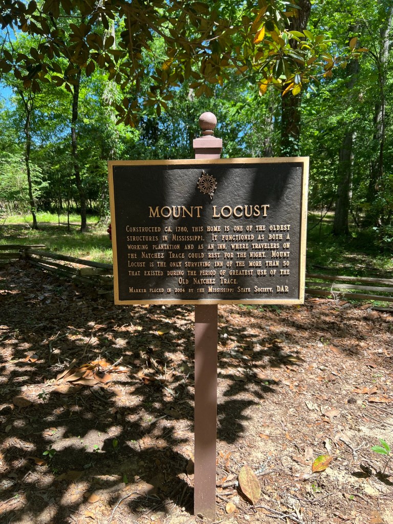 - Leaving Rodney my next stop was Mount Locust. Mount Locust was a working plantation and an inn built in 1780 where travelers on the Natchez Trace could rest for the night. There used to be about fifty that existed on the Old Natchez Trace. Here’s how it worked. Farmers or settlers floated their products downriver and sold them at Natchez or Ne Orleans. Most of them walked back over the Natchez Trace to get back home because their boats could not go upstream. It’s a beautiful place to visit where you can look in the old inn, take some walks around the property, and walk to the family cemetery.