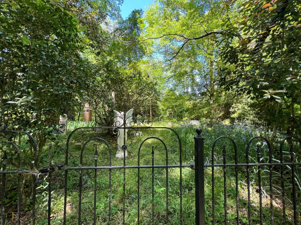 - They also pointed out that there was an old cemetery on the hill behind the church which I wouldn’t have known about if they hadn’t said anything. It’s an easy hike up the hill and there are several graves there that are from before the Civil War. It’s a haunting graveyard because it is slowly being washed away by the river that runs back there. Many of the headstones have fallen over or are broken. The two guys that I talked to volunteer (along with some others) and do what they can to keep the cemetery maintained. I saw where they had put back together several headstones and had done a tremendous amount of work trying to keep everything clean. Many graves were still being visited judging by the flags and flowers on many of them. See below.
