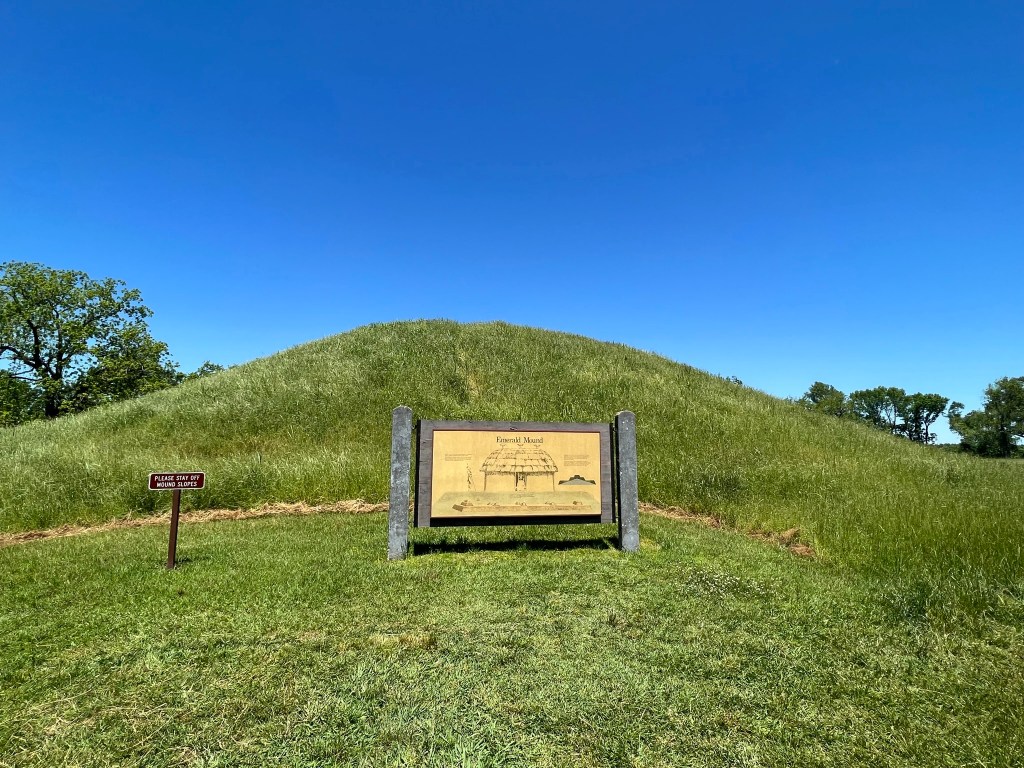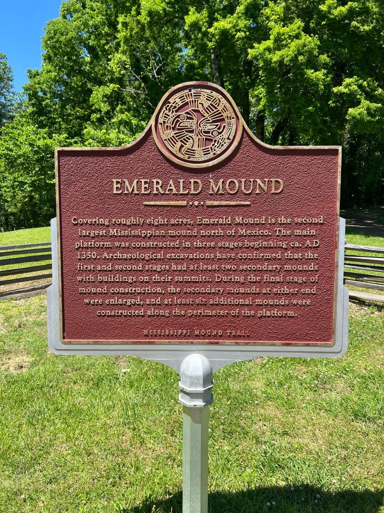 - Emerald Mound is the second largest temple mound in the United States. It dates back to 1350 AD and covered roughly eight acres. You can walk around them but don’t climb on them. It’s a beautiful area.