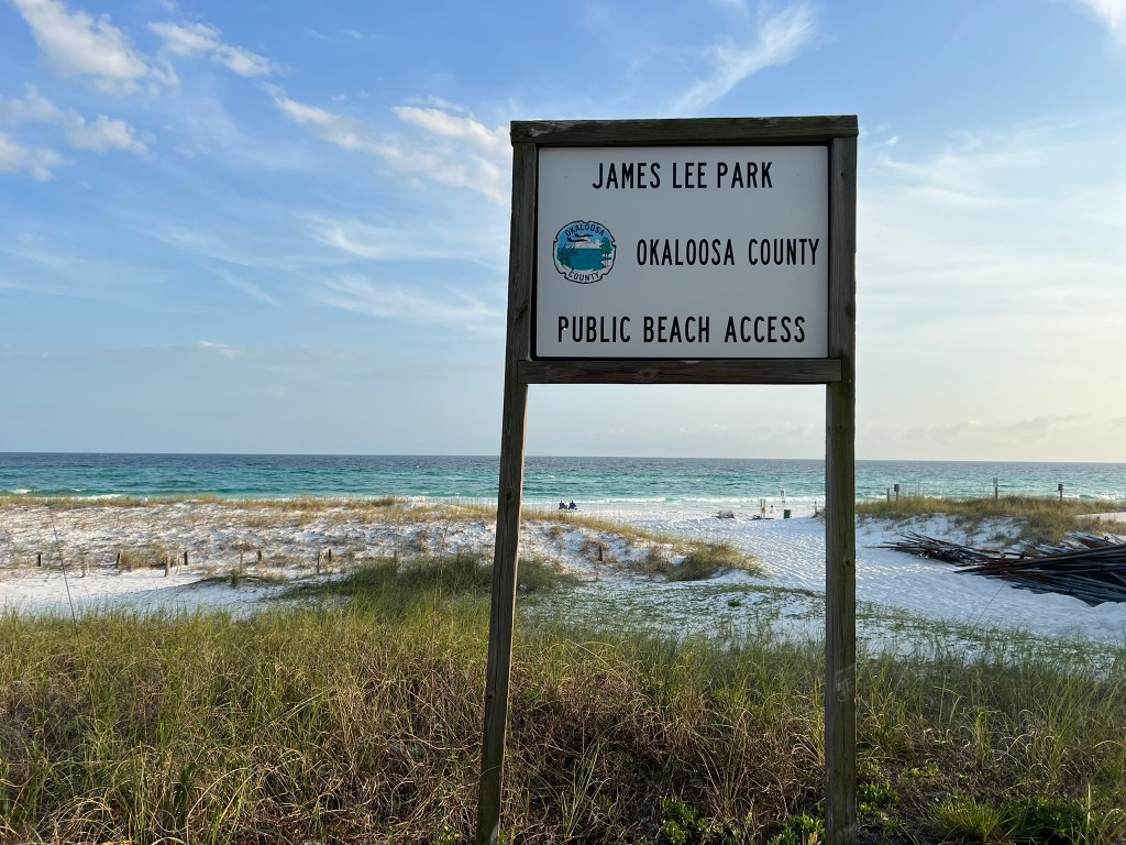 - Leaving Miramar Beach I wound back to the hotel just a few miles and stopped at James Lee Beach. I liked this beach a lot! Sand was great; just a perfect mix of fluffy goodness with no rocks. Not many people on the beach at all. There is a Private part and a Public part so don’t trespass! Parking here was a breeze. I’d go here over Miramar Beach any day. Check out the pics and let me know what your think.