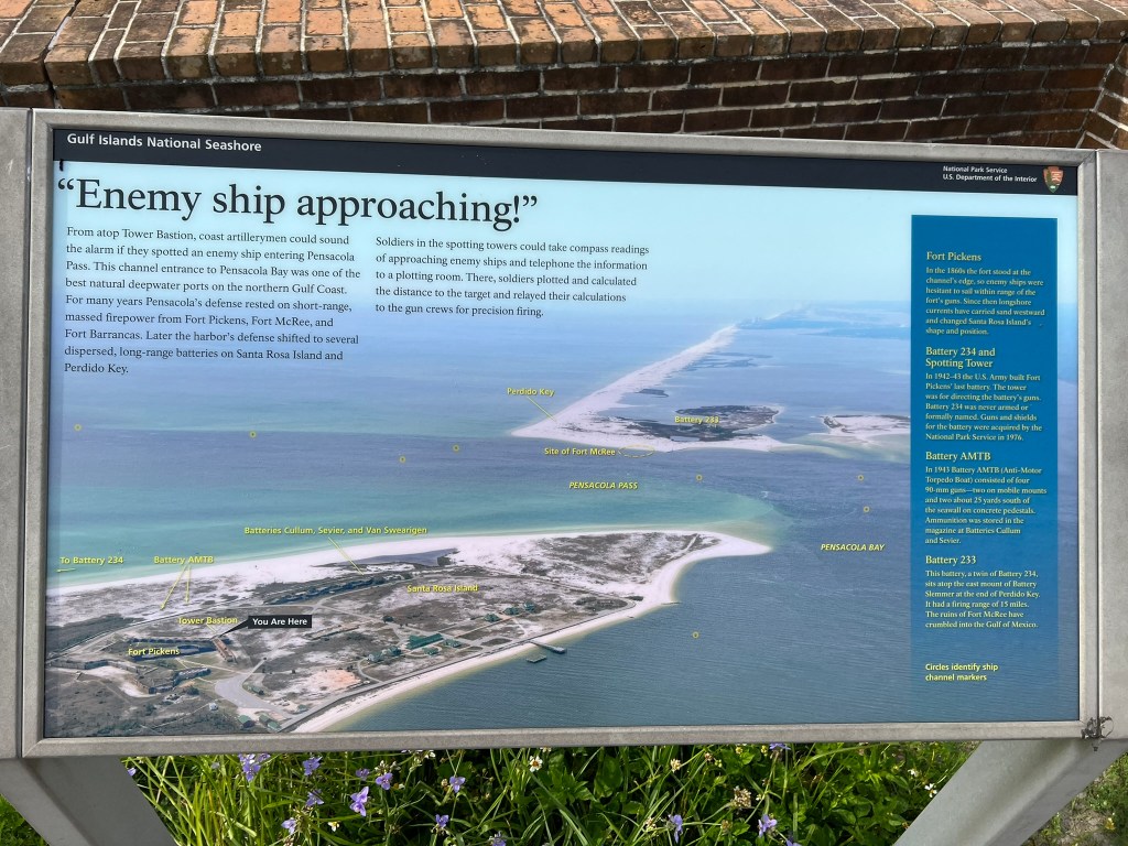 - Keep heading down Fort Pickens Rd to see Fort Pickens. Make sure you make some of the stops along the way as the beach is great along the short drive and there are some cool stops at the outlying batteries that are worth going through. Make sure you read the sign. It’s very impressive. I’ve posted some pictures of Battery Worth below.