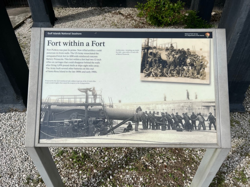 - Fort Pickens was built to defend Pensacola Bay and while it never defended against a foreign invasion it did against the Confederacy during the Civil War. The cannons and fortifications are massive. Rather than type it all out go ahead and read the signage in the pictures I took below. It’s a very interesting place that you could easily spend hours going through.
