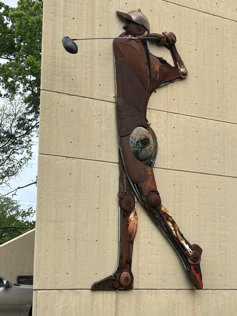 - Keep on going north and you’ll run into the Athletes Made of Junk at the United States Sports Academy on 1 Academy Drive in Daphne. Who knew there was so much stuff in Daphne? These are “junk art” sculptures made by Bruce Larsen as a tribute to different sports and athletes. All of the sculptures are made out of scrap metal. It’s pretty cool to walk around and look at. I’ve included lots of pictures however there is more to see as well as a small museum inside to check out. I don’t know why but the swimmer always freaks me out a little bit….