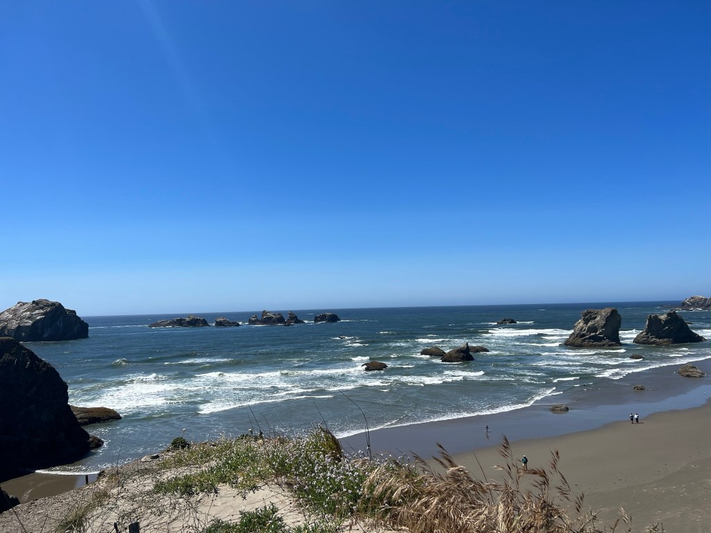 - Woke up beachside at the Pacific Reef Hotel right besides Gold Beach. Basically ate a ehhhh breakfast and then walked out the hotel a few steps to the beach. Always a good way to start the day! Needless to say we went for a walk on the beach that morning.