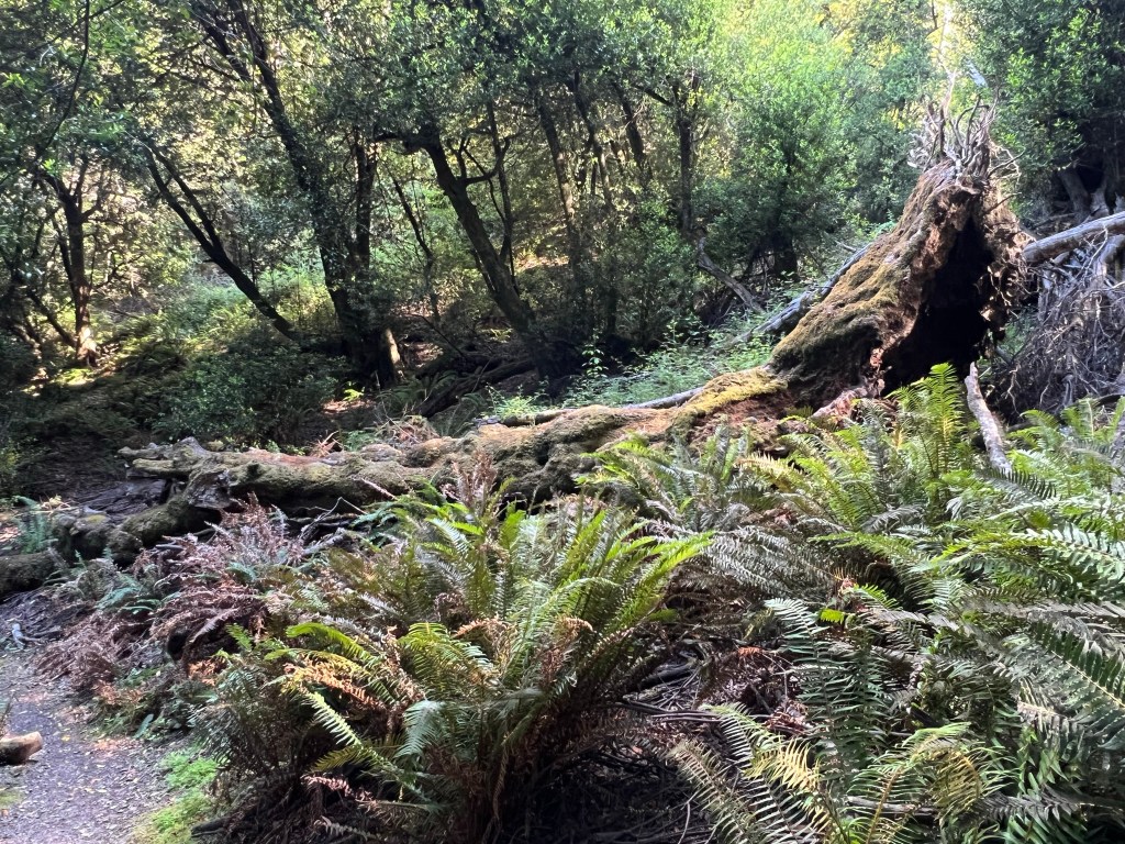 - Next stop is the Myrtle Tree Trail at the Rogue River-Siskiyou National Forest. Home of Oregon’s largest known Myrtle Tree. 88 feet tall, 42 feet in circumference and a canopy of nearly 70 feet wide! What a magnificent tree! Just a short hike up a steep hill and the beauty is yours to behold. Well…what they didn’t put into the brochure or the hiking trailhead sign is this is Oregon’s (former) largest crepe myrtle tree. It blew over in a storm and is no more except for what you see laying on the ground. Very sad; bet it was beautiful in its day.