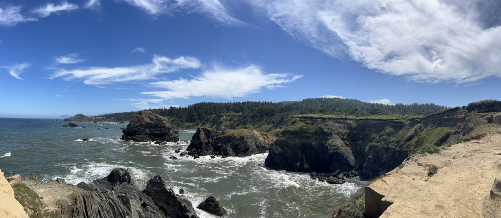 - Continued on Highway 101 to Sisters Rock in Port Orford, OR and hiked to the cool sea cave. Very windy but well worth it!