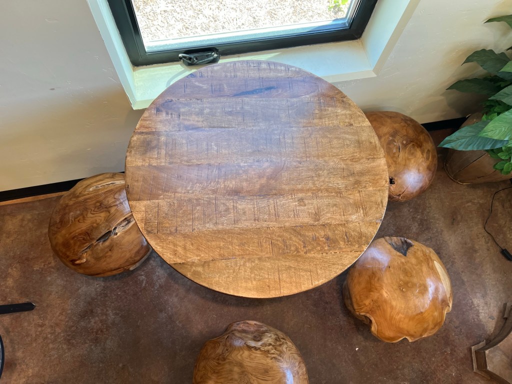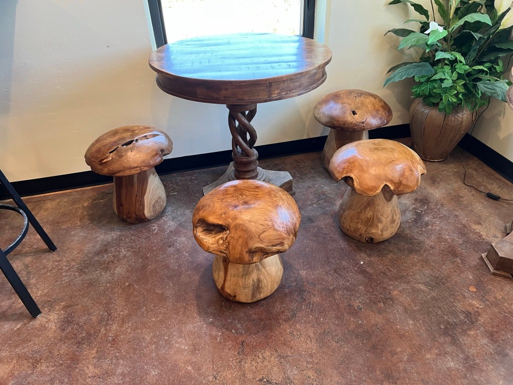 - Drove on down the road to do a mead tasting at Hierophant Meadery in Freeland (still on the island). Tasting was fun as we got to sit outside to do it and the weather was beautiful. The hostess was really nice and gave great service as well as just a great attitude. She genuinely enjoyed being there and sharing her knowledge! They have quite the variety of mead to taste and Olivia tasted them all lol. She really loved it and ordered a few bottles! In fact they forgot to charge her shipping and when she called back they told her not to worry about it and they shipped them to her for free!!! That’s impressive service!!!!!! Also, they have really cool stools and tables inside and a cute bathroom sign… and yes, I really loved that table!