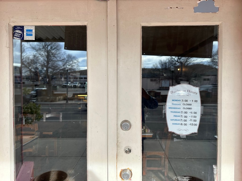 - We ended up skipping breakfast so we could eat at Judy’s Bread & Breakfast Bakery Café in Alpine. Imagine our sorrow when we showed up there to get breakfast and eat one of the best cinnamon rolls in existence and they were closed for the day. Guess I should have checked Google to see if they were open on Tuesday’s…. No big deal says I “we can eat at Marfa’s Burritos in Marfa; they have awesome burritos!” Queue driving down to Marfa music with a quick stop at the Marfa Lights viewing platform (it’s far better at night) and then a quick spin around town to view and over to the burrito place only to find that it was also closed today!!!! Ugh..that one hurt. Ends up most of the places were closed today so we ended up eating a quick bite at the Sentinal Coffee in Marfa. The food was good and the cranberry hot coffee was delicious. Showed Lisa the two main hotels in town and then realized we could have eaten at one of them…Arghhhh.. Oh well. As a side note the drive from Alpine to Marfa was very pretty.