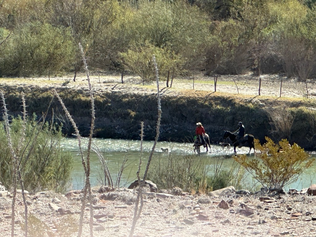 - Drove on from there to Hot Springs Historic Trail to do a quick hike. I do love this hike as it has a lot of history and natural beauty combined. If you’ve not done it you need to do. I love the story of how it came into being! You don’t even need to take a dip in the Hot Springs to appreciate although most do. I like the petroglyphs, fossils, and beauty of the hike especially when you are up on the high ground for the last half of the hike. We even saw some Caballero cowboys watering their horses in the Rio Grande!