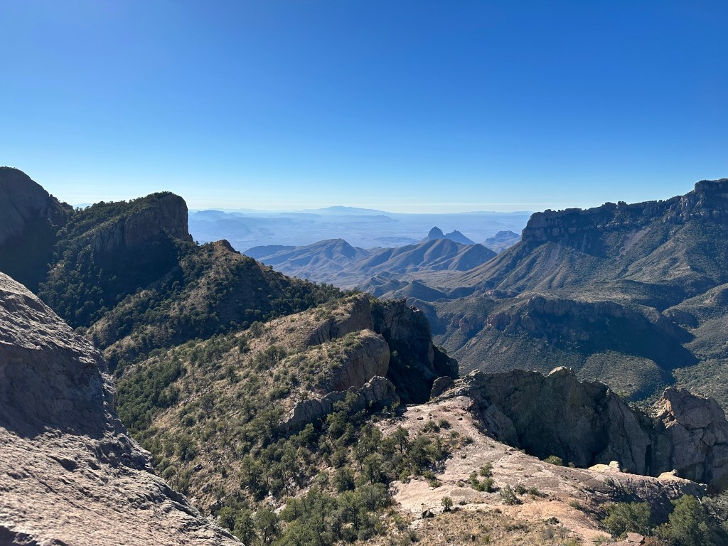 - Emory Peak trail has some beautiful views as you hike along it so make sure you take your time to enjoy it. It’s not a long trail as it’s only a mile and a half long however it is filled with beautiful views. The last little bit is pretty much a rock scramble with the last 20 feet or so having to do some rock climbing. I stopped at the last 20 feet mark as I didn’t feel it was worth it or safe as I could see where you could get up but coming down would be very challenging and not worth the risk to me personally. Some people did go on up and some did not. It’s a personal choice you’ll have to make if you get there. No matter what you decide the views are stunning and kudos to you for doing the hike. It’s a lot of elevation and steps to get here! You should be proud!