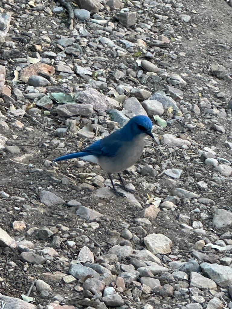 - Sat at a picnic bench outside our cottage and just in general enjoyed the peace and quiet of the afternoon surrounded by mountains, clean air, and beauty. It was magnificent and restful!!! Wow! Just as I’m typing this several deer just ran down a slope in front of me. Not sure what spooked them but they were really moving. A couple minutes later they circled back and ran down the road behind me and a huge buck ran behind the cottage we are staying in. He was running at full speed so I was happy to even get him in the photo.