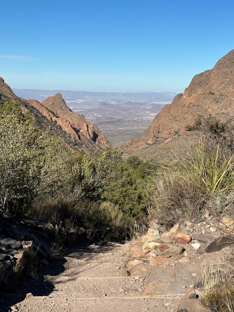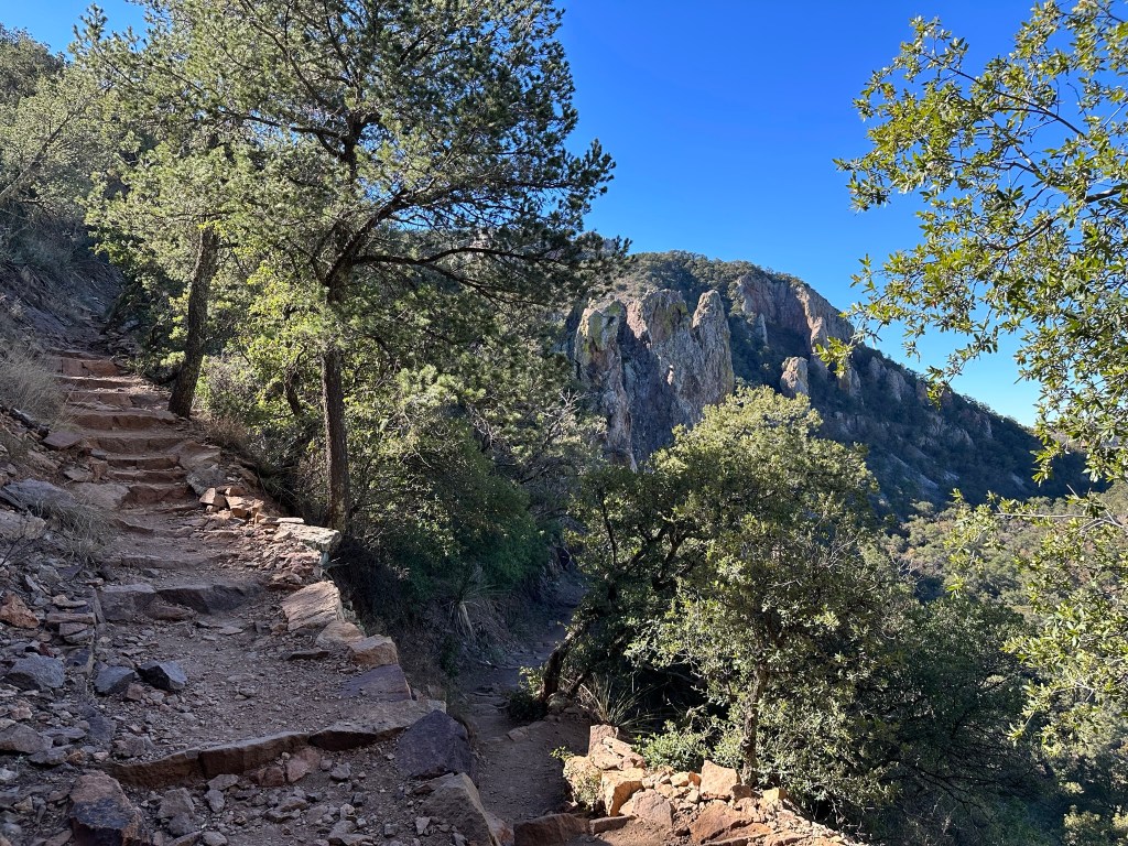 - The way back down to the cottages went quickly overall. Lots of stairs down so while not as tiring as going up my feet did get sore, and my knees started getting achy. Overall, it was a great hike and I’d have no qualms redoing it. As a side note there looked to be some nice camping spots on the trail up to Pinnacle Pass. Next time I may try to snag one of them. Also, don’t forget to take plenty of water on this hike (or any hike at Big Bend) as you’ll not want to get dehydrated. Don’t forget the snacks also. Remember to only do what you are comfortable doing. It’s about having fun not about how many trails you hike.