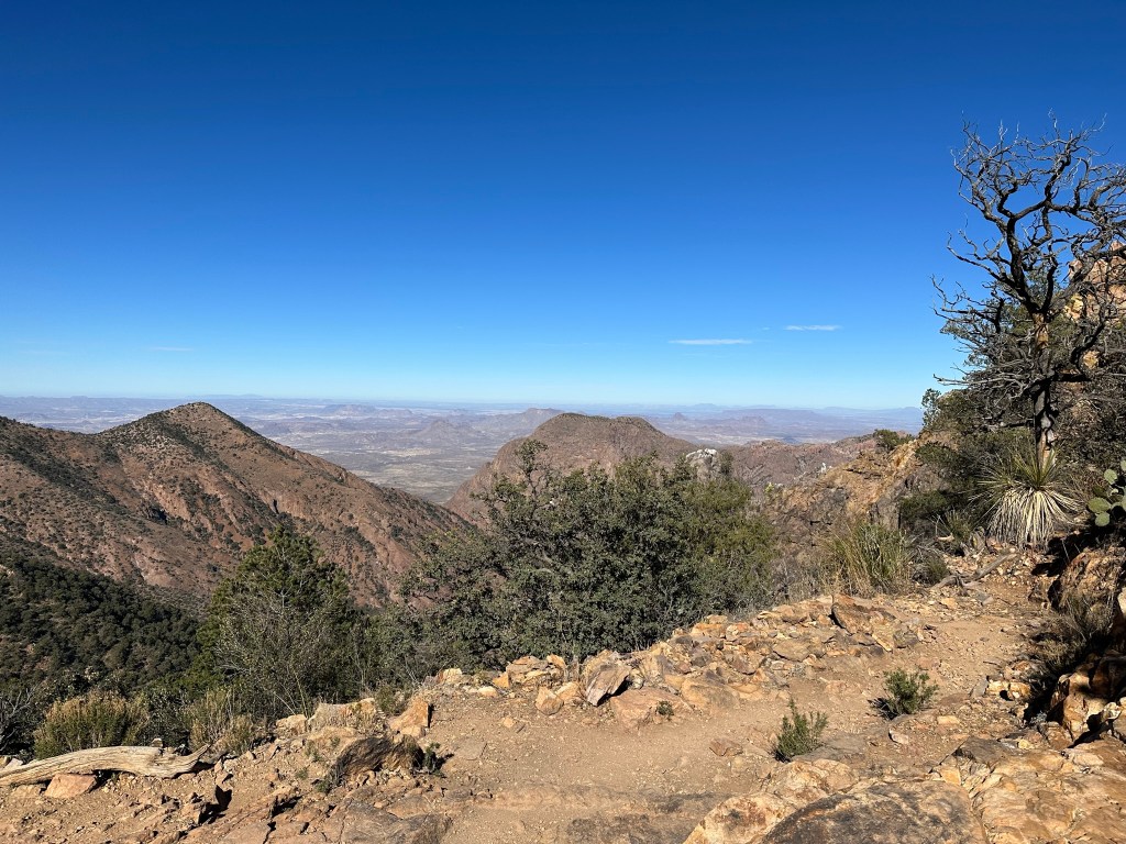 - Up at 6:30am today to do Lost Mine Trail. Stunningly beautiful trail and probably my favorite trail of all the ones I’ve done at Big Bend. Take your time on it so you can really enjoy it. We like the trail best early in the morning with the way the light plays off everything. I’m sure others have their own preferences however that’s how we like it. I even planted my “flag” at the top to claim it!