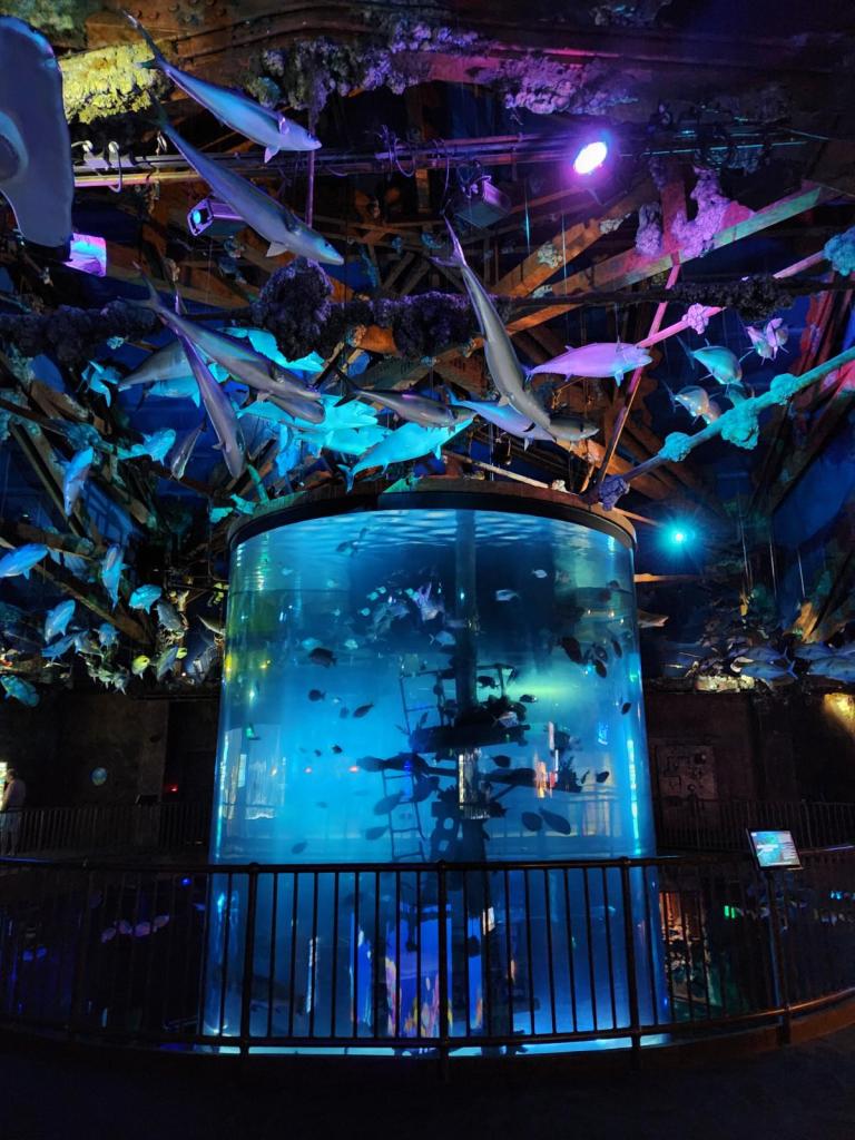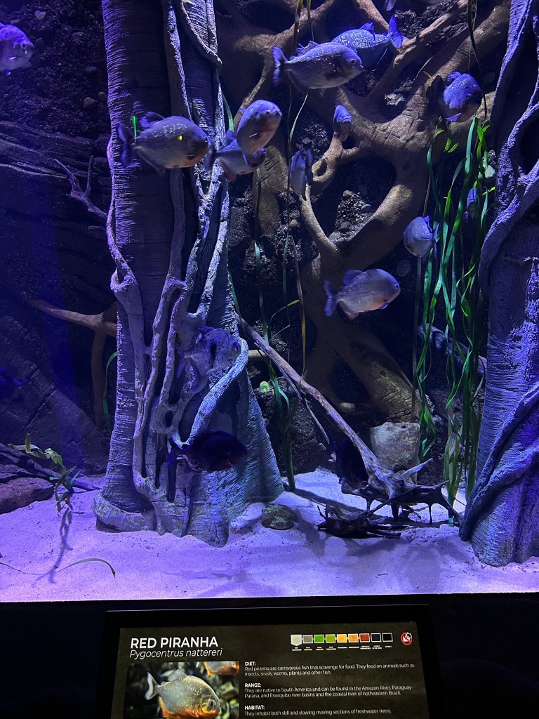 - Since Evan is a big lover of aquariums it was a no brainer that we went there first. The aquarium was voted the best in the world for several years and it lived up to our expectations. Things were a little off though as there was a terrific downpour just as we were driving into town. Once we got into the aquarium they told us that lightening had struck them and knocked out several of their lights and they were working on getting them restored. From our perspective it wasn’t a big deal. You should note that it’s forty five dollars for the basic admission and you should really plan to spend several hours here. The exhibits are well done and there are a LOT of them. You won’t be disappointed. I took a LOT of pictures and finally decided I was done taking pictures and just wanted to walk through and really enjoy it to the fullest. So…I’ve posted a lot of pictures but know they don’t even start to do this place justice.