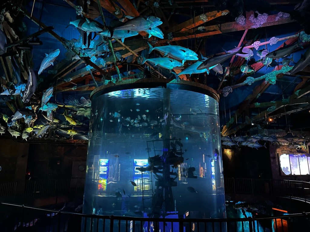 - This is the holy grail of Bass Pro stores. It’s so huge it’s difficult to describe or comprehend. If they don’t have it I’m not for sure you’ll find it anywhere. We headed into Hemingway’s there to get some dinner as we had skipped lunch and were very hungry. We got the bison meatloaf, bison burger, and duck jalapeno poppers. All the food tasted great and it was fun to sit there and eat while you could watch the fish swim around in the aquarium.