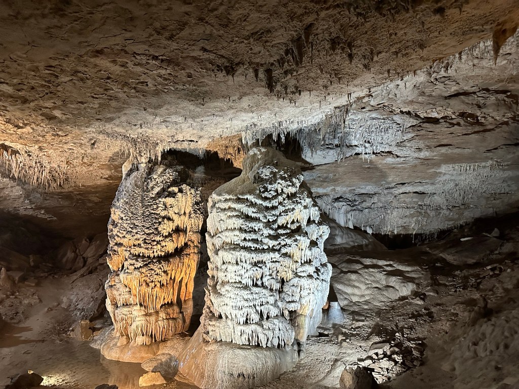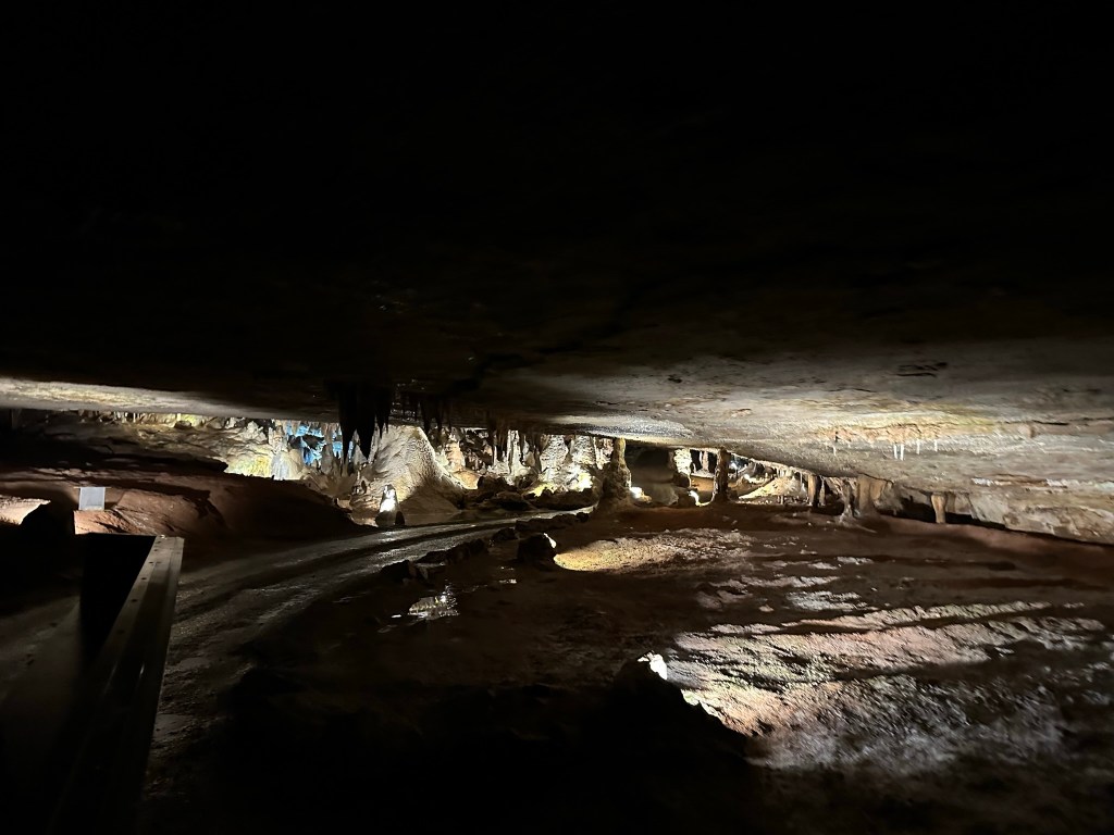 - Out the door and onward. First stop of the day was Fantastic caverns. Trust me, you can’t miss it. There are bill boards up everywhere about it and I have to say that it’s worth it. It’s a cave tour that they take you on by a jeep drawn tram so no walking. Ideal for many people and pretty novel. I’d never done a cave tour like that before so I didn’t know how much I’d like it but it was well done. The cave was discovered in 1862 by John Knox’s (a farmer) beagle dog chasing something down a hole which turned out to be a cave. John didn’t want the cave to be used by the Union or Confederate governments so he kept the cave’s existence a secret until 1867 when the war was over. He then put an ad in the local paper for someone to explore the cave. Springfield Athletic Club volunteered to help explore and all 13 of them were women unknown to cave owner. He was surprised when he opened the door and they were all women that were experienced spelunkers. True story! In fact you can still see their names in the cave where they signed them.