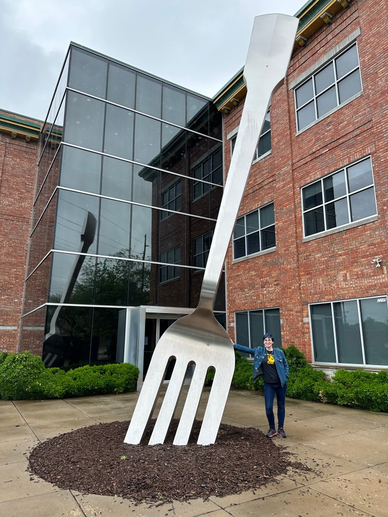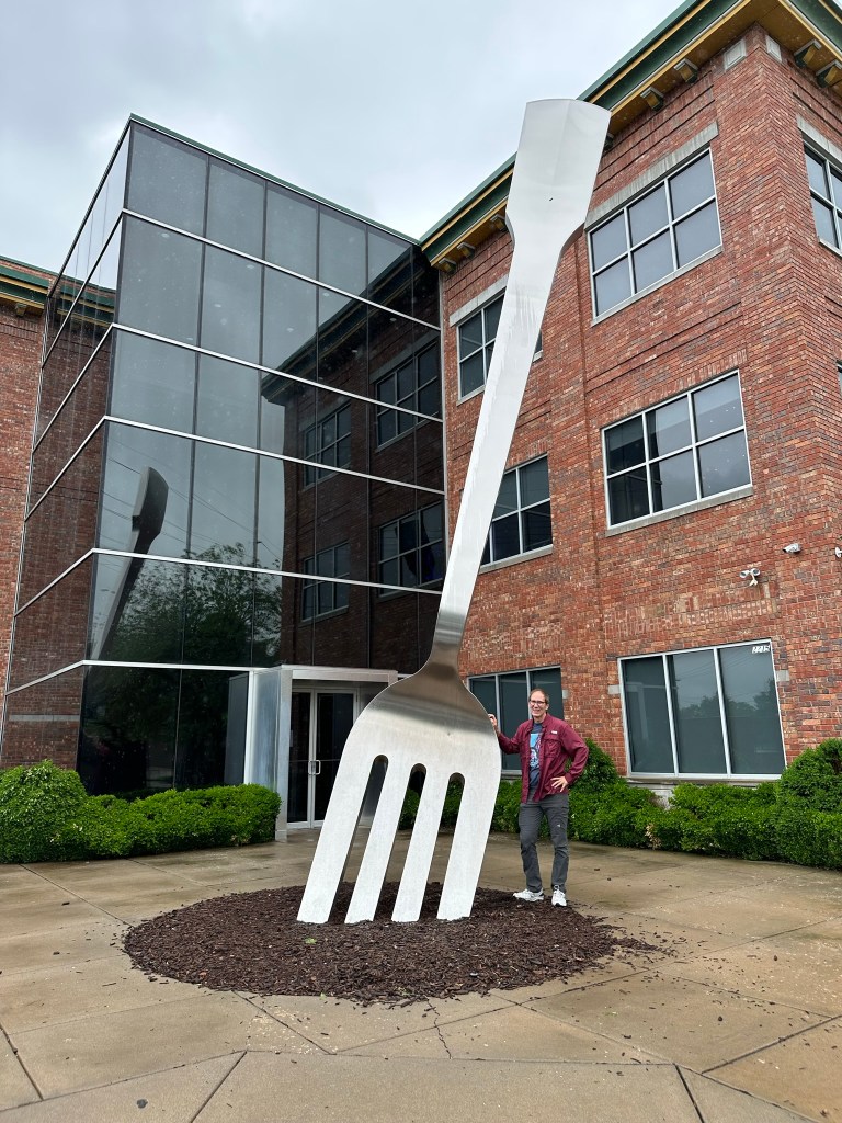 - Leaving Fantastic Caverns we drove from there to over to 2215 W Chesterfield Blvd., Springfield, MO to see the World’s Largest Fork by mass. It’s 35 feet tall and weighs approximately 11 tons. The worlds tallest fork is in Oregon and is 37 feet tall. The fork is hidden behind some buildings on the main thoroughfare so you have to drive around the building to find it. You’d think at 35 feet tall you wouldn’t have to but you do!