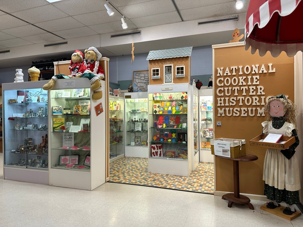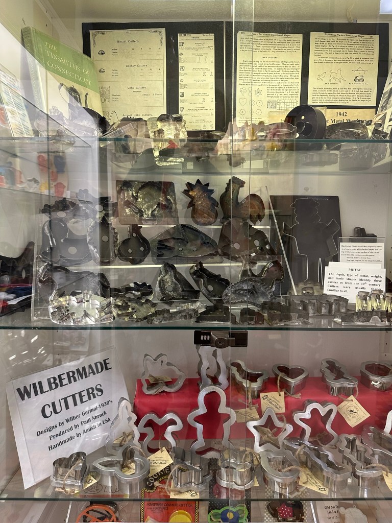 - Our main reason for the stop was the Cookie Cutter Museum which we thought was pretty cool. I didn’t realize they used to make them by hand by wrapping tin around spokes that used to make the mold. Very time consuming! They earned every cookie that got! They had several modern cookie cutters to the side and you could take one for free if you wanted and yes we did, thank you very much. We also bought an Iris cookie cutter for a Mother’s Day present which was well received several days later. The displays were very interesting and I learned a lot. I never realized there were so many types of cutters and in 1750 the Tinsmiths were making backed cookie cutters for the colonists here. Don’t confuse this for the first cookie cutter as they had those way before this is just the first ones they started making in what would be the USA.