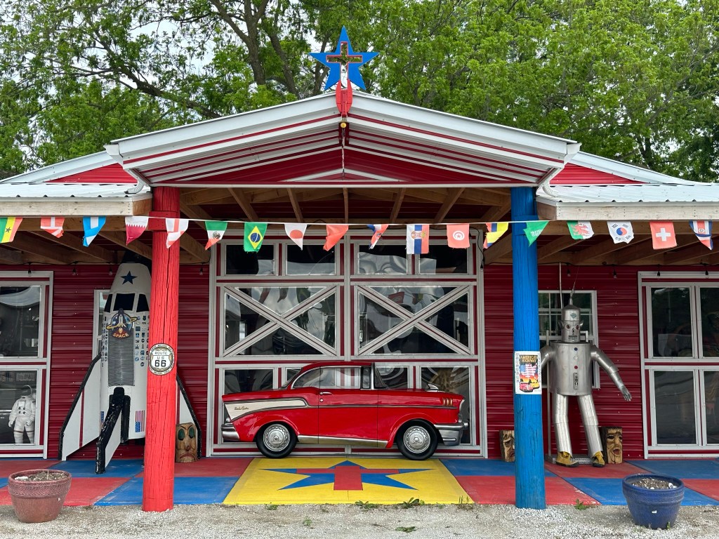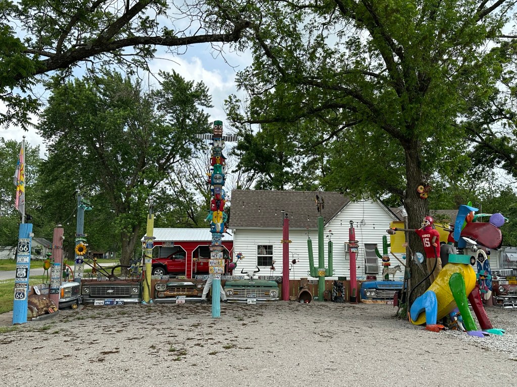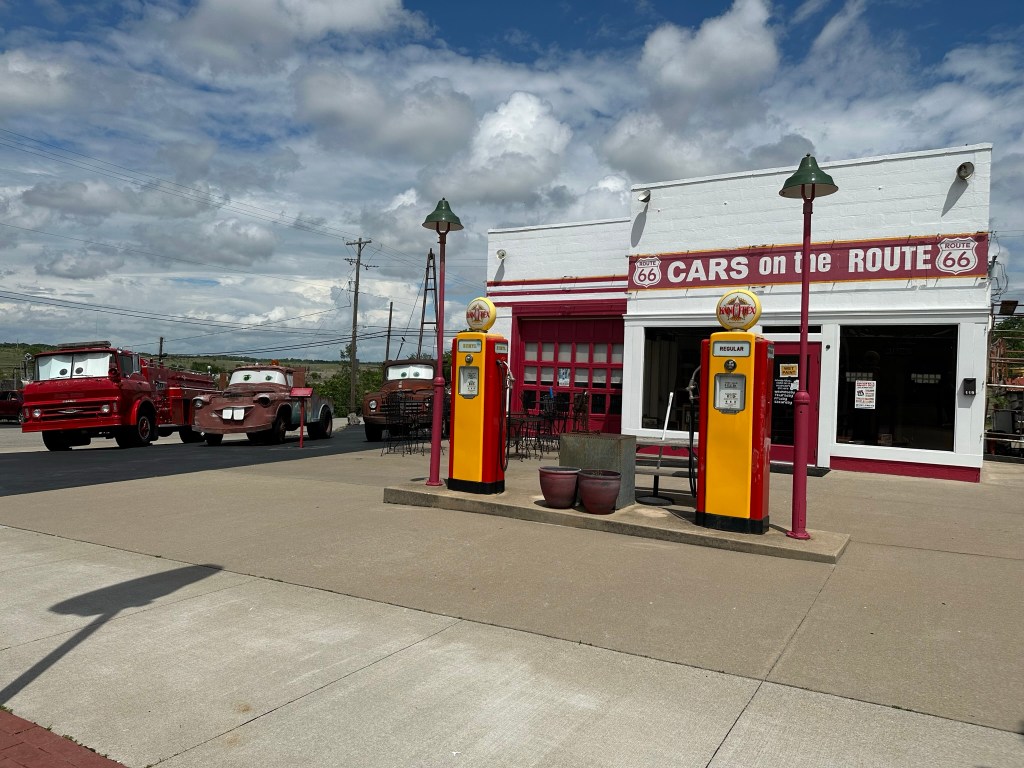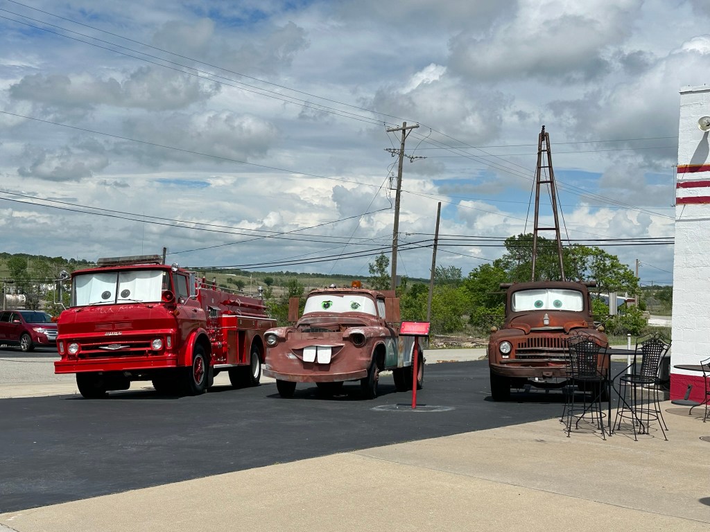 - Leaving the museum we drove to Cars on the Route in Galena, KS where we found some cars from the movie Cars and a few other cool sites.