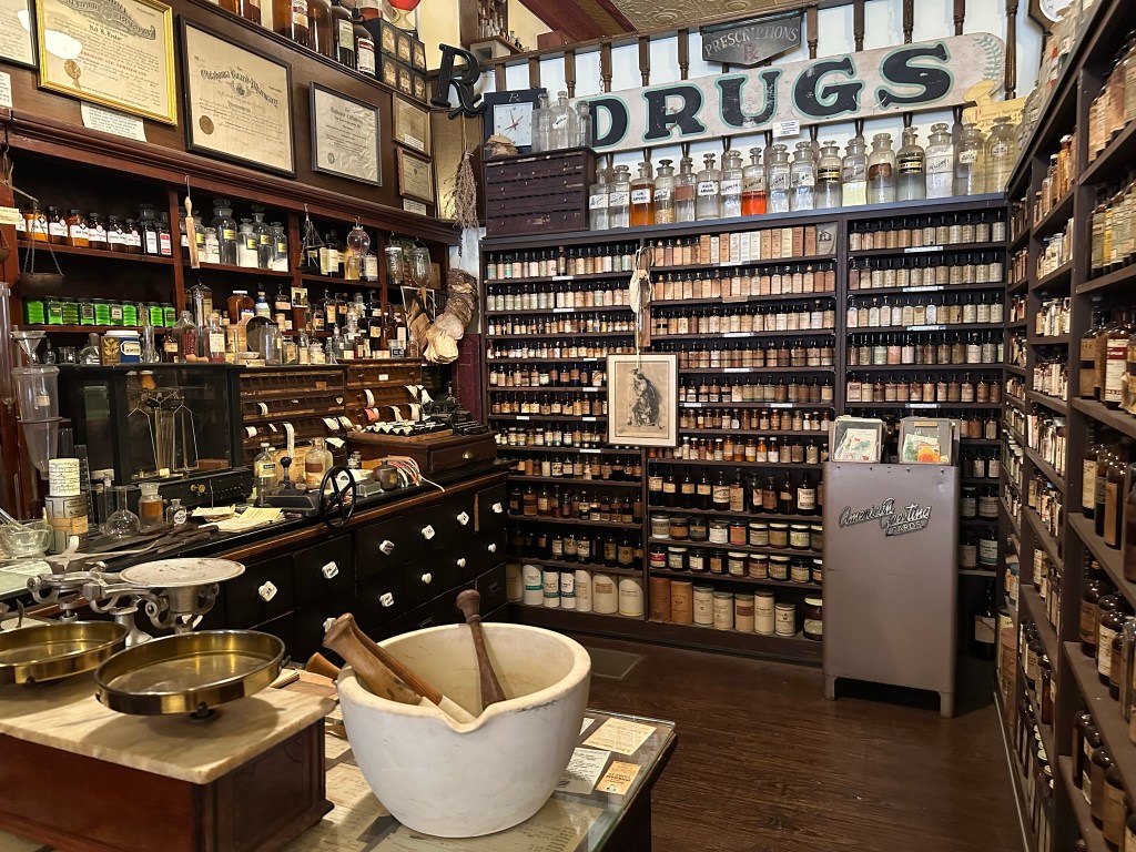 - From the Historical Village we drove about two and a half hours over to the Oklahoma Frontier Drug Store Museum and apothecary garden in Guthrie. This is a super cool old drug store museum that is stuffed to the gills with old pharmacy stuff from way, way back in the day. They even had some old time remedy books and a little bit of everything else. Right next to it was the apothecary garden because you used to have to grow some of this stuff. It didn’t always come in a bottle to count out! Make sure you click on the pictures and zoom in on this. You’ll be amazed at what you see.