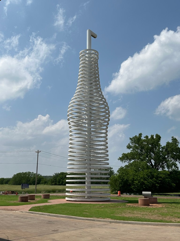 - We ended up staying at the Historical Village for only a few minutes. We got out looked at the train and the Red Fork Centennial Oil Derrick (the tallest in America) and we were back on our way. It looked like you could drive part of old 66 by the museum and we thought around but you can’t so we got to back up some. Also the building was closed so there’s really nothing to do here except what we did. If you love old trains you’ll love this stop! They also have a giant Tulsa Route 66 emblem you can take your phot with however we didn’t.