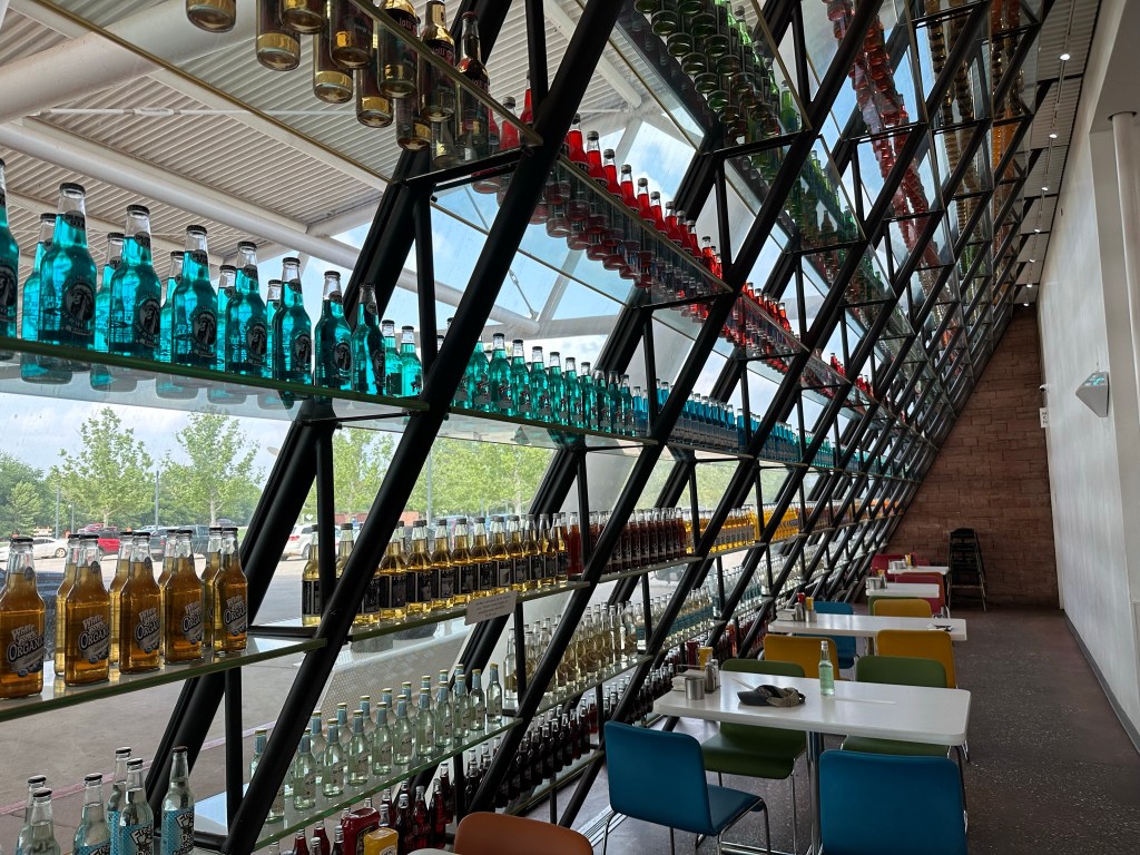- Finishing our exploration of the barn we drove maybe a mile up the road to Pops 66. Pops 66 is the place to go when you need a soda but don’t know what kind it is. They have about any kind of soda pop you can imagine in any flavor. We split a burger with pulled pork, bbq sauce, on a jalapeño cornbread hamburger. After much deliberation I had a mint julep soda while Evan had a marionberry cream soda. Again, she won. The marionberry was pretty good. I think if the day would have been hotter my mint julep would have been the winner but wishes….you know the saying….