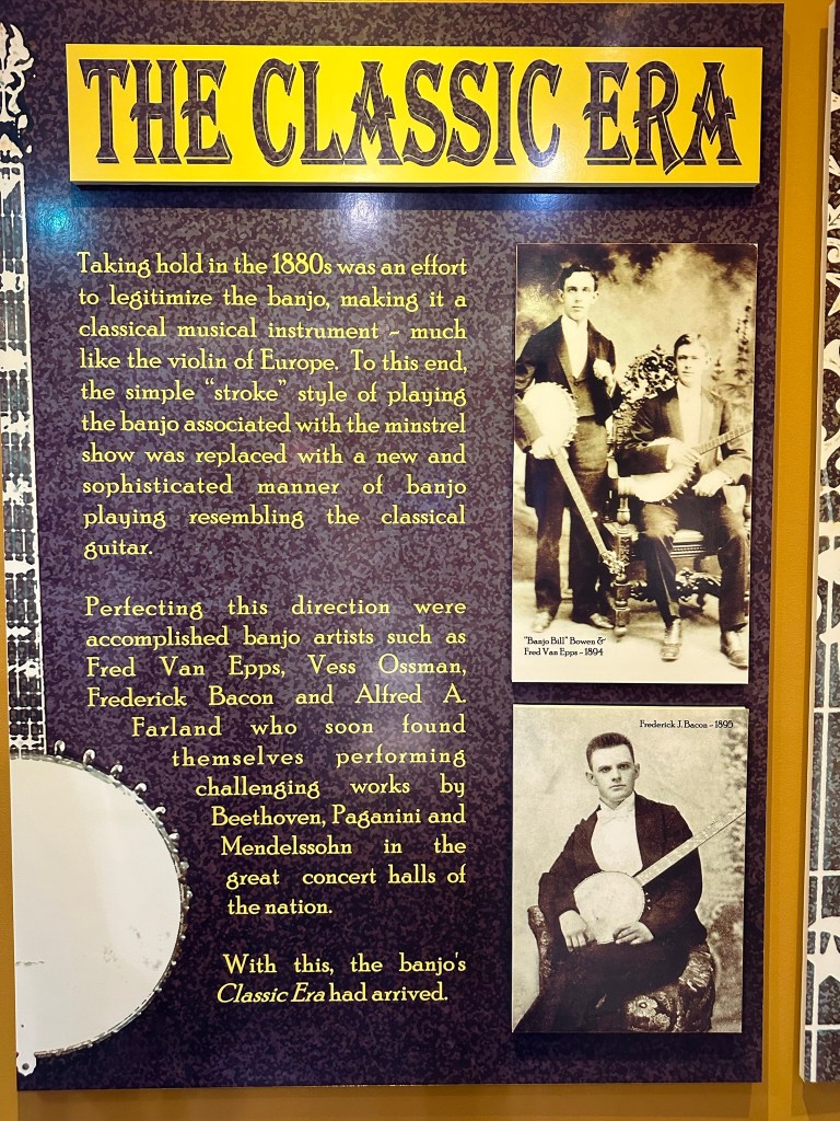 - Again, gotta say; never realized there was so many types of banjoes or the history that went with them. I tried lots of pictures but had a really hard time getting any good ones. There are several different era’s of banjo music. I didn’t take pictures of all the different eras but hopefully there is enough for you to wet your appetite for further research. Worth the stop.