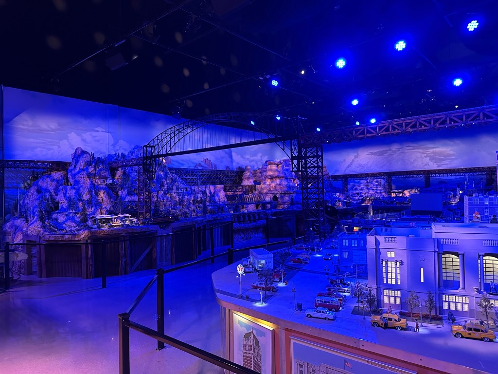 - TrainTopia is a 2,500 square foot model train exhibit that features the American Southwest as a backdrop. My pictures aren’t very good but it’s what you get cause it’s all I got. In all seriousness it’s a fun place. You go on a scavenger hunt to locate certain items on your checklist and some are pretty hard to find. The set’s are very well done. The lights in the exhibit change from day to night mode every 15 or so minutes. Shoot, even the traffic lights in the models change from red to green. It’s very well done!