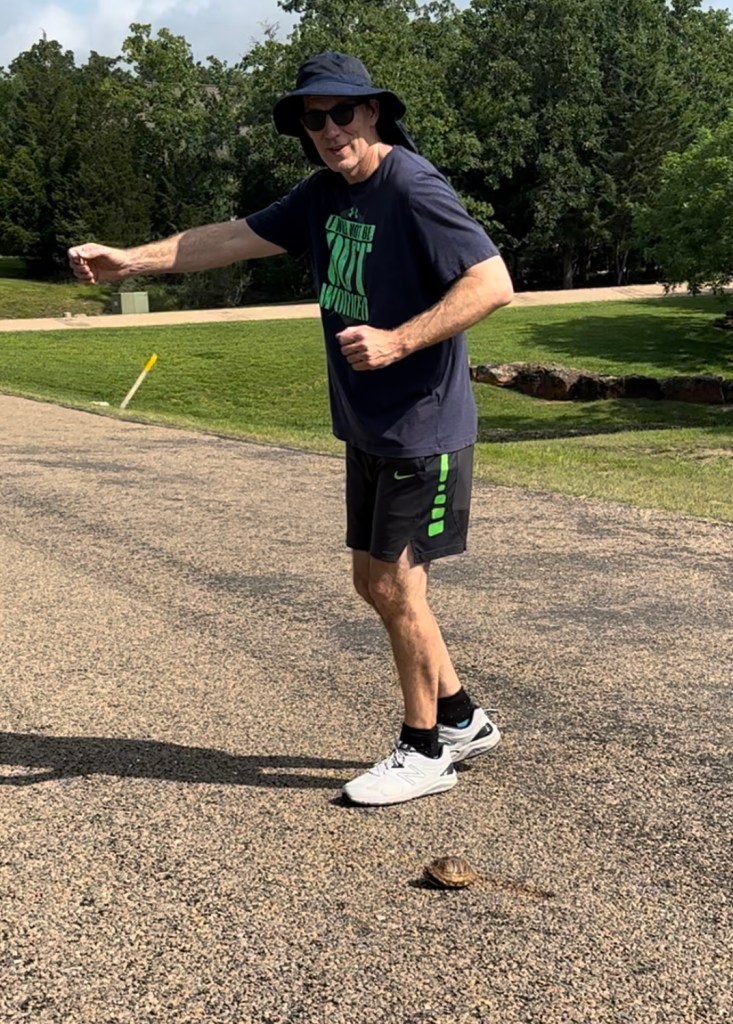- The next day as an ode to our trip and turtle crossing the road game I engaged in a all out race on my morning walk from a worthy competitor. Cute “Chariot’s of Fire” please…