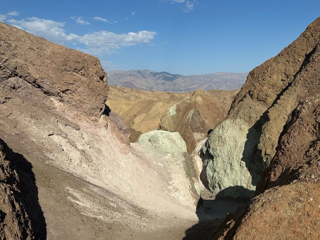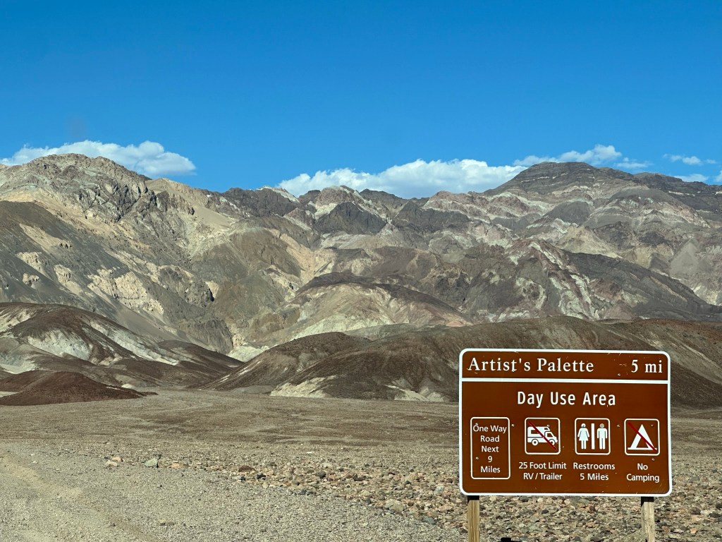 - Leaving Natural Bridge Canyon we wanted to see what Artists Palette looked like in the morning. We did a quick drive-through and a short hike amongst the colors. Spoiler….BEAUTIFUL!! I wish the pictures could convey the colors better. Virtually all these pictures are from our short hike through Artists Palette on Artist Drive Loop. I’ve already went into why the colors are what they are so if you need a refresher look above from our afternoon visit the previous day.