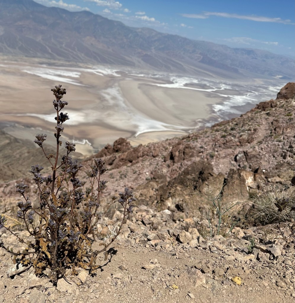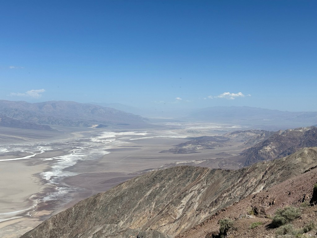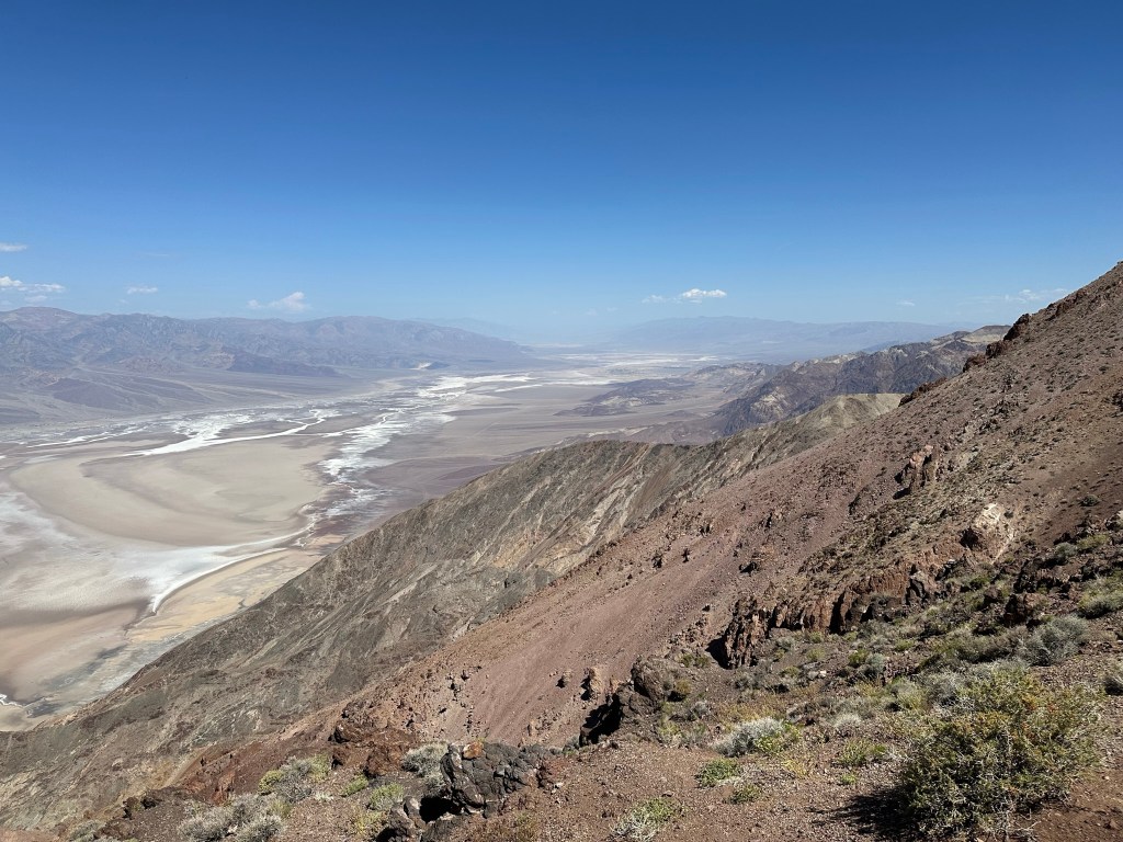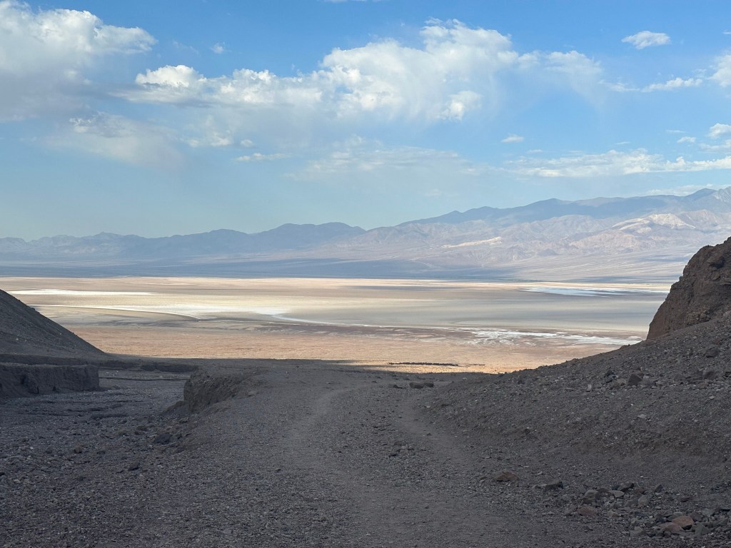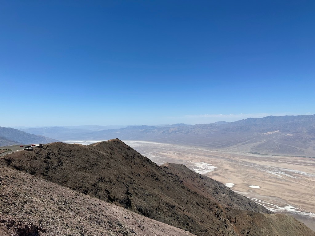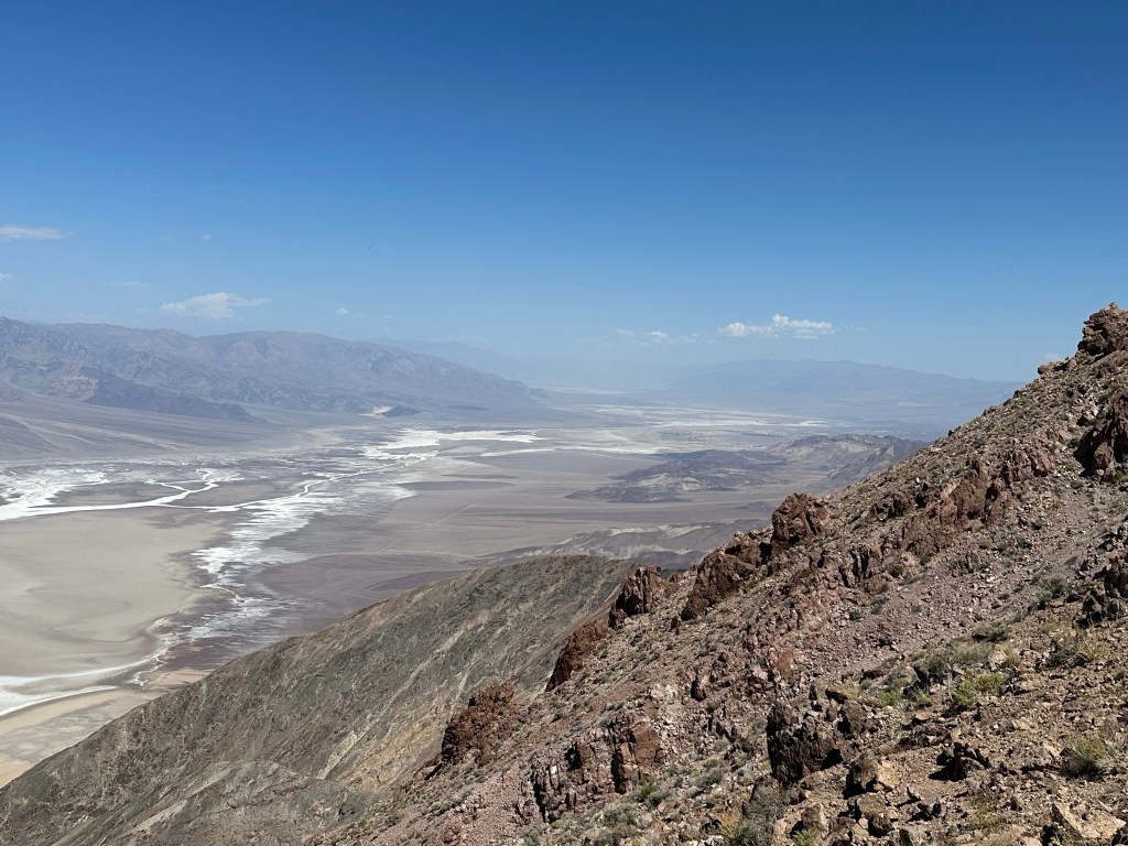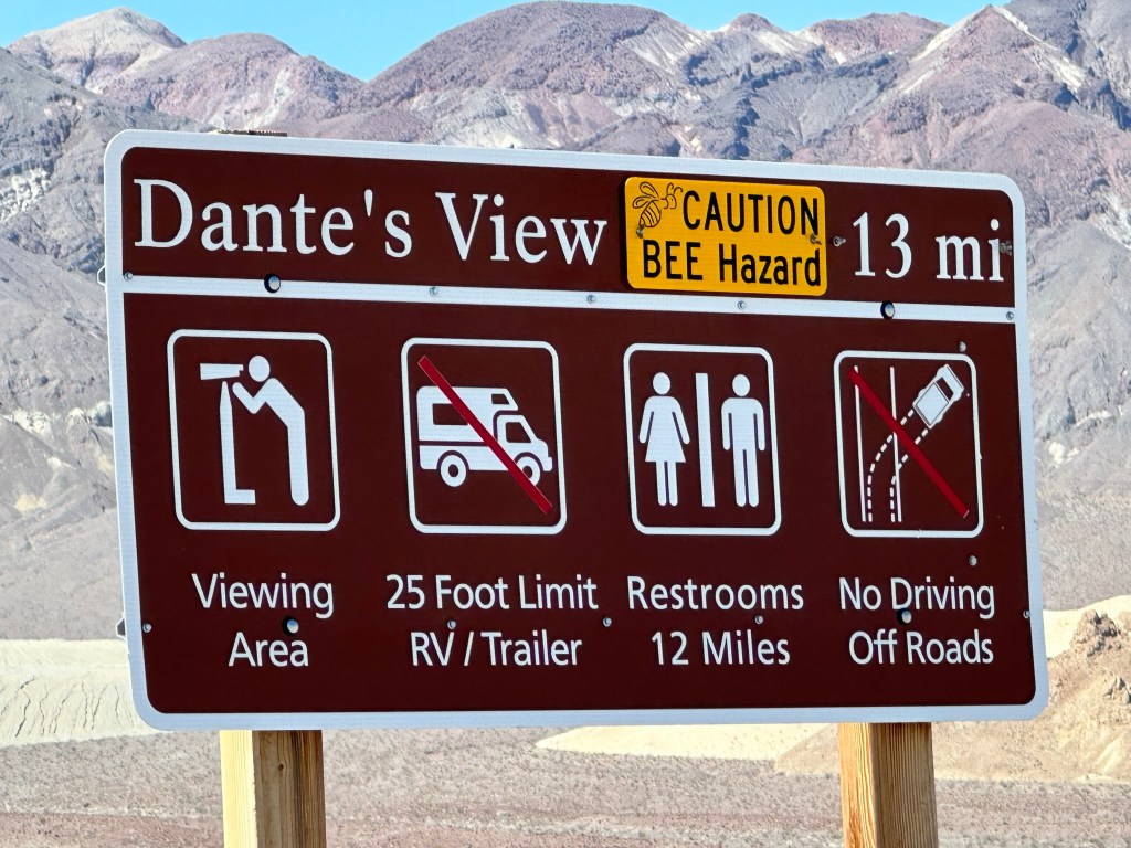 - We drove on up to Dante’s View Overlook which is the best overview of park of the park. The temperature was probably 15 degrees cooler also so that’s a big plus! The overlook was amazing and it is a wonderful overview. I even hiked on the trail a short distance while I was up there. This would be one of the trails you’d want to come back and hike when it was a little cooler as you are on the rim of the overlook looking down for quite a while.
