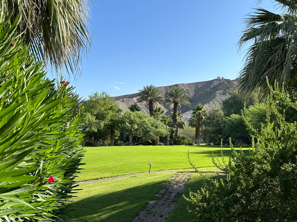 - and finally we checked into the hotel where we will be spending the next couple of nights. The Inn at Death Valley ; Casita 1 king. $806.84 for 2 nights here. Front desk ladies need to retire. Helpful hint everyone. When the guest says something like “hello or we are celebrating a birthday so want to extend our stay” maybe say hi or congratulation back instead of cutting them off so they can’t even speak. Having said that they did get the job done so plan on staff interaction being a business transaction. So unfortunate!! Room is very nice. Learned how to drive a golf cart since we are staying in one of the casita’s! Here are some pics of the hotel and the room.