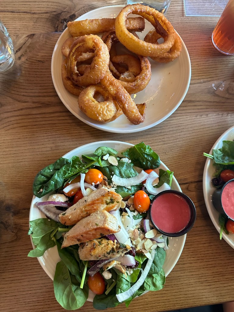 - By now we decided we were hungry so we stopped at the Last Kind Words Saloon in Furnace Creek to grab a bite to eat and look around. We ended up getting and splitting the Spinach salad with chicken ($31) and onion rings on the side ($4.50). So, yes the salad was expensive but the portion was huge. I think he may have just given us each one as each of ours filled up the entire plate. Thanks to you good sir! I hope you enjoyed the tip I left you too! The salad was good and the onion rings were really good also so I’d easily redo both of them. The ambiance of the place is really neat also and I think you’ll agree when you see the pictures.
