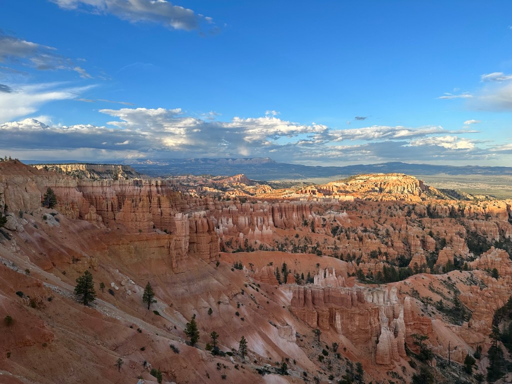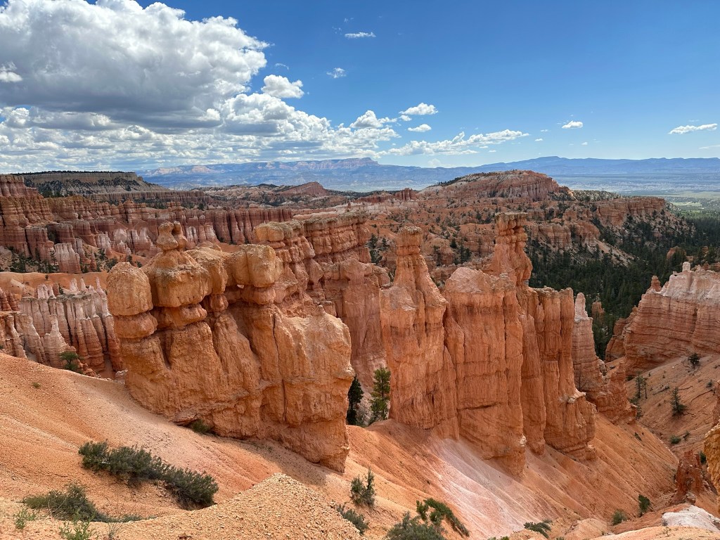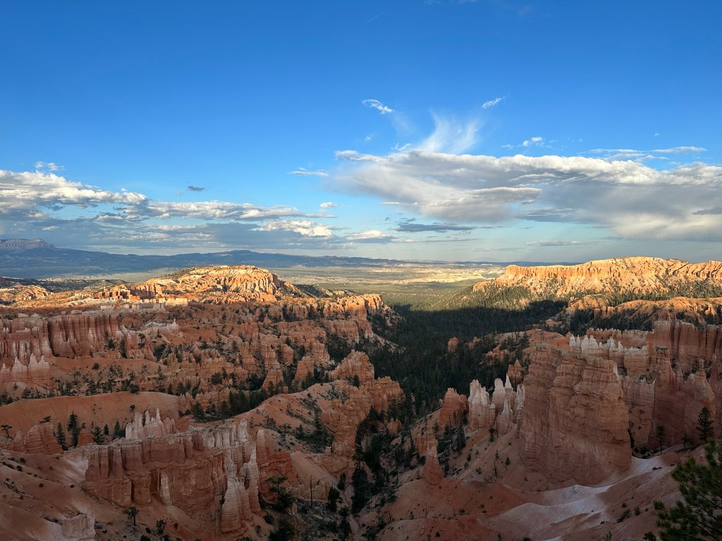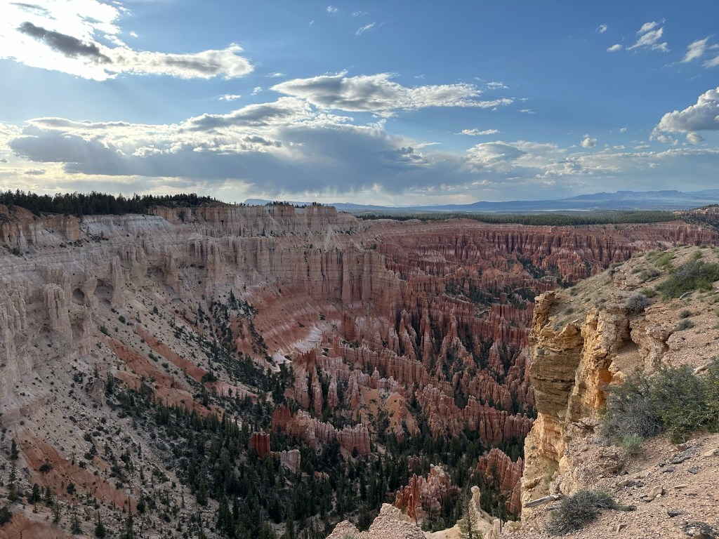 - From there we crossed the Salt Lake Desert from NV to West, Utah on our way to Bryce Canyon. It was a long drive in a few places but always pretty and took us about 4 hours to hour next stop in Panguitch.