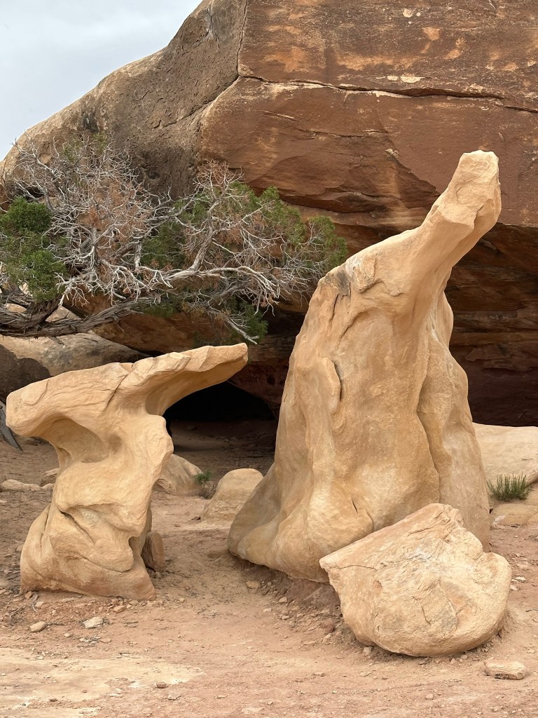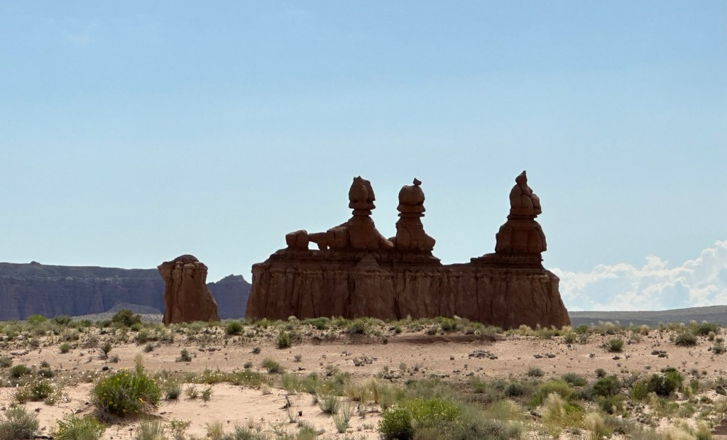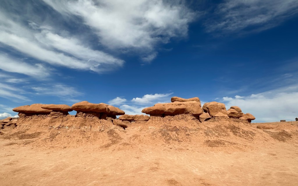 - On down the road quite a ways was Goblin Valley State Park and it’s easy to see why it has that name. They have lots of slot canyons to explore, yurts to camp in and of course Goblin Valley which is filled with these bizarre looking structures.