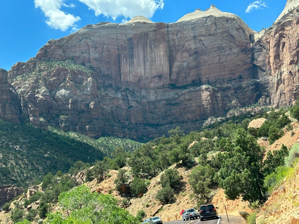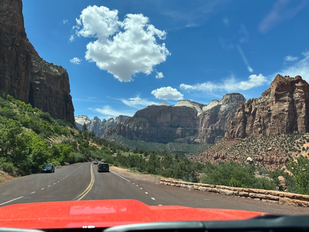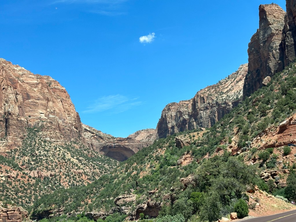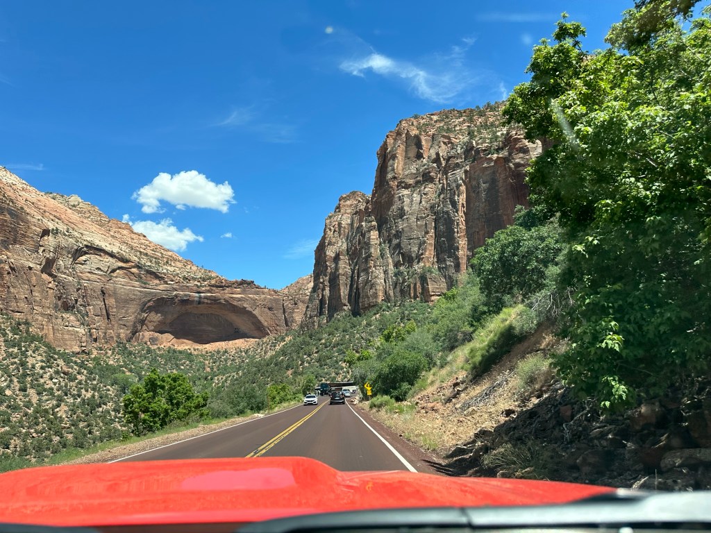 - We drove Hwy 9 to Zion and came in through the east gate. Not much of a line at all so we thought we’d be home free. Not…. the park was super busy and the tunnel was really backed up. Once we were finally able to make it through we saw where someone’s vehicle had stalled on the other side and really backed things up over there. That felt like one long tunnel!