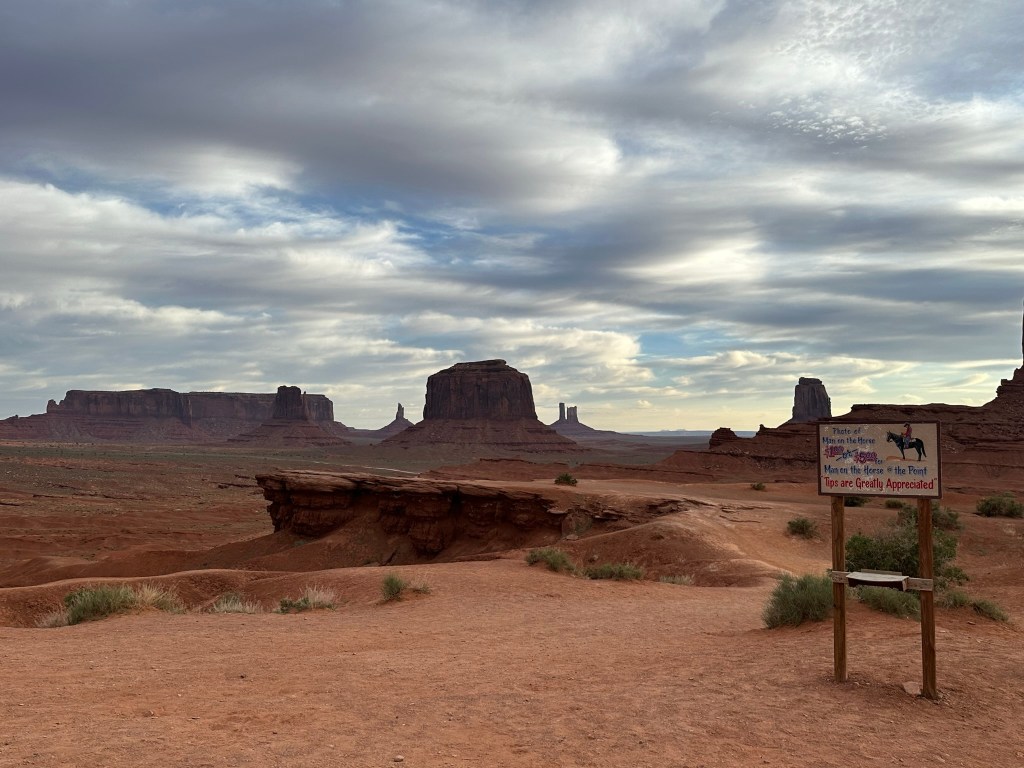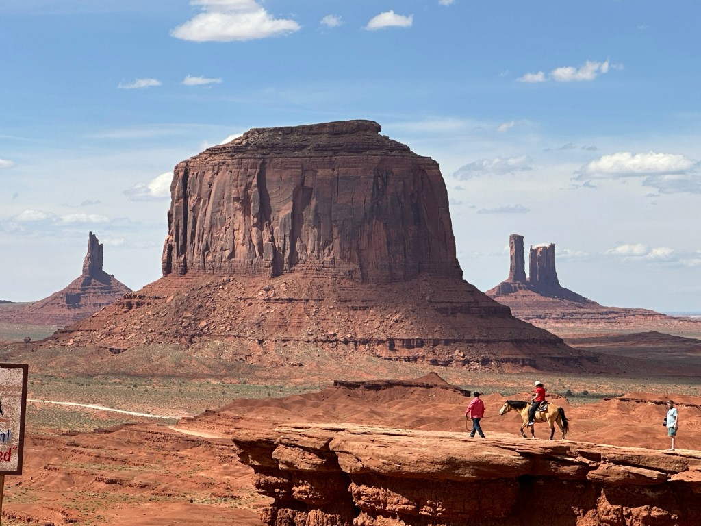 - I included a couple of pictures of John Ford Point to give you an idea of how the perspective changes when you move even a few yards. By the way John Ford was the famous director who put Monument Valley on the map. More about him and John Wayne later at Goulding’s. Make sure to pay the Man on the Horse!