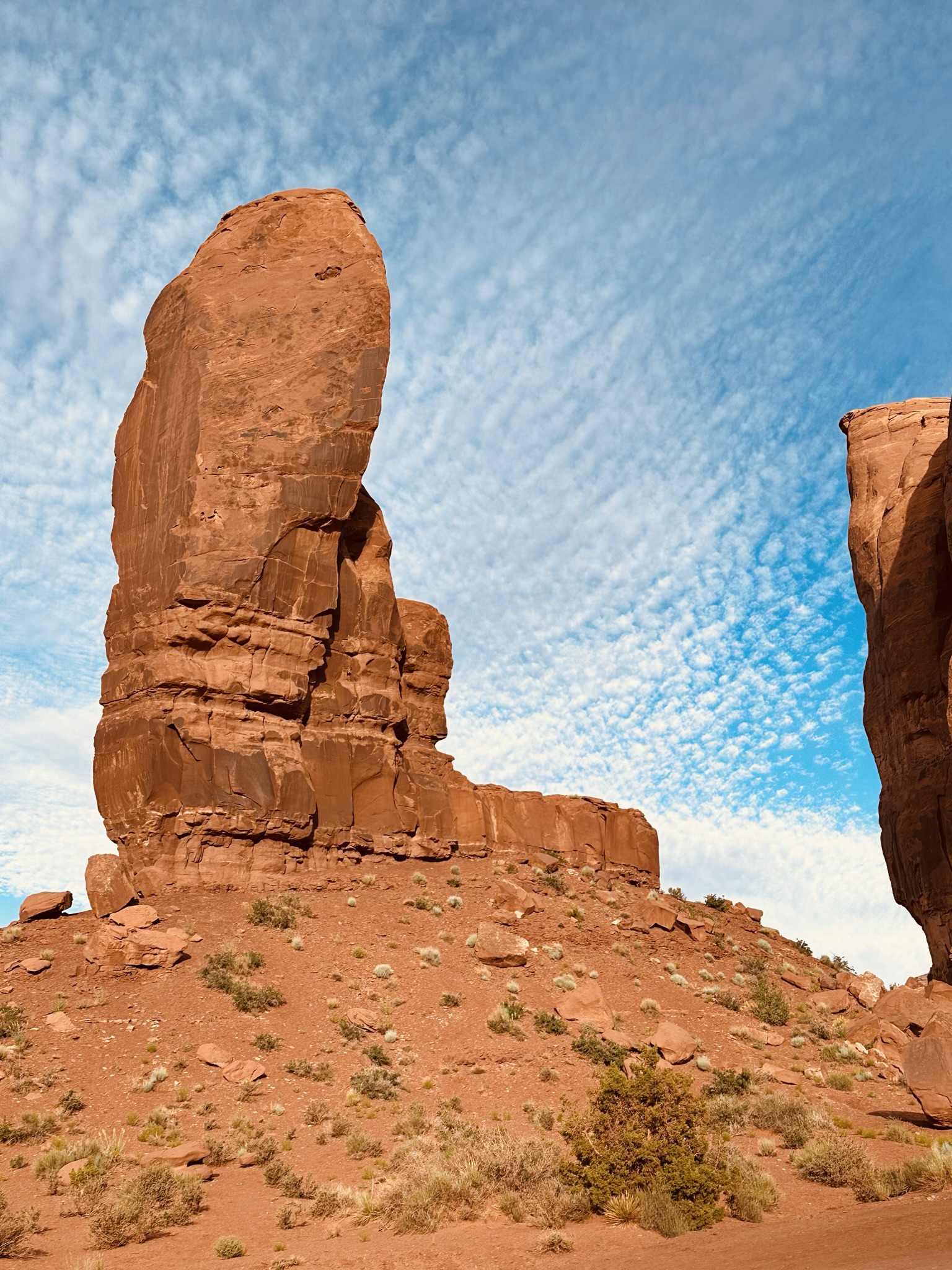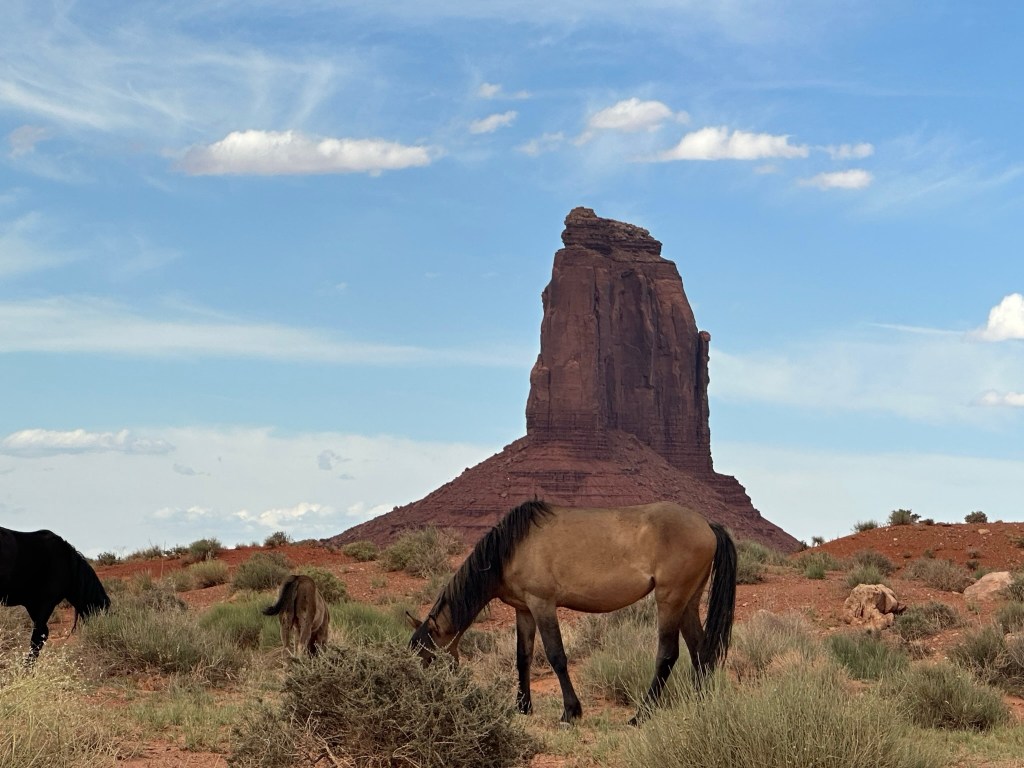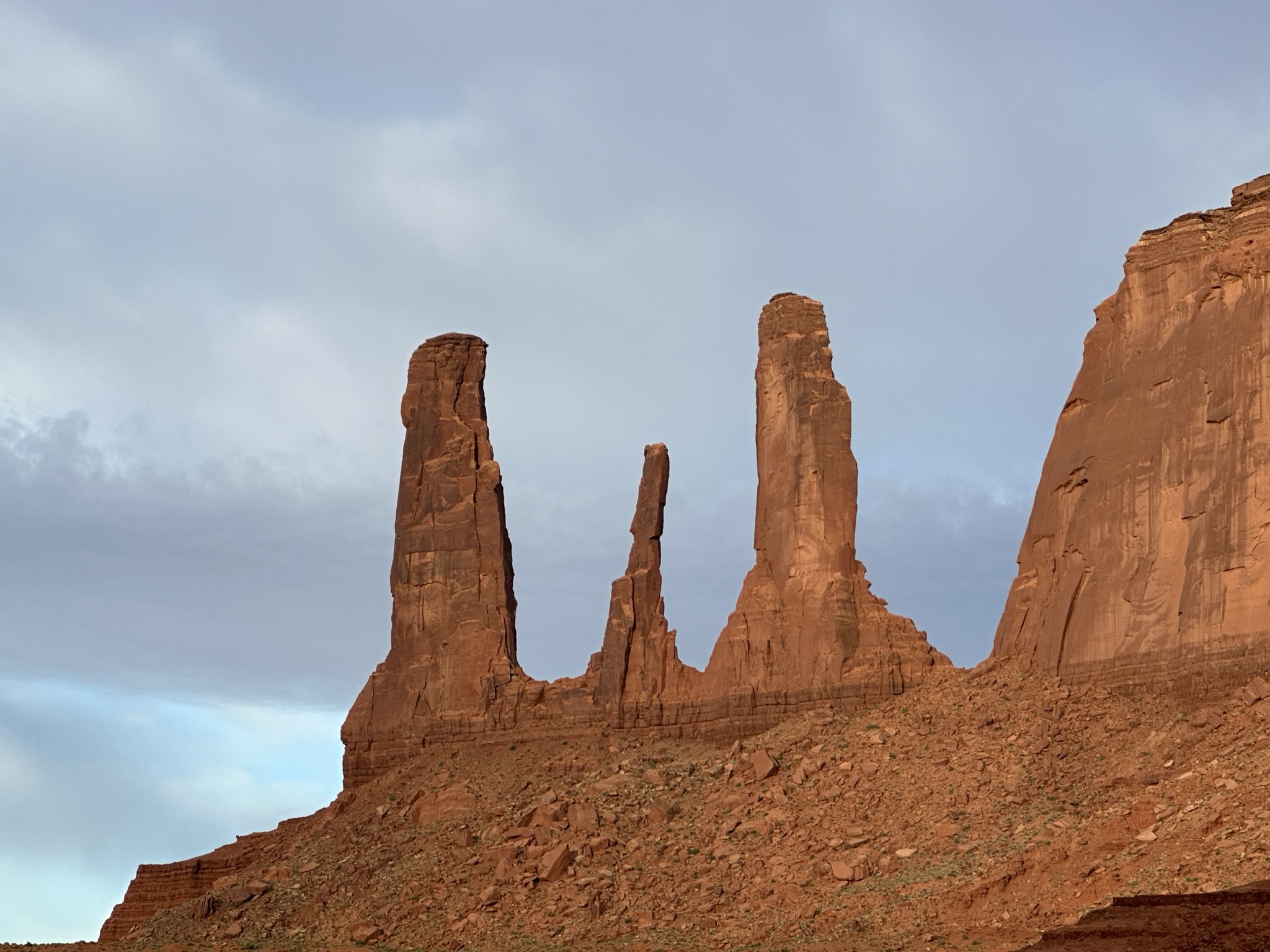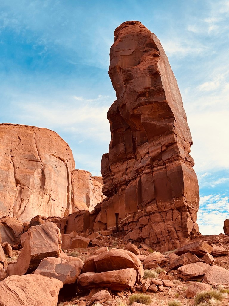 - Once you get past The Thumb the one way part of the road drops out back at the horse corral and junction to get to Linda’s and John Ford Point. We drove on up that way to get one last view of the Three Sisters. What do you think? I think it’s one of the best pictures we took that really “feels” like Monument Valley to me.