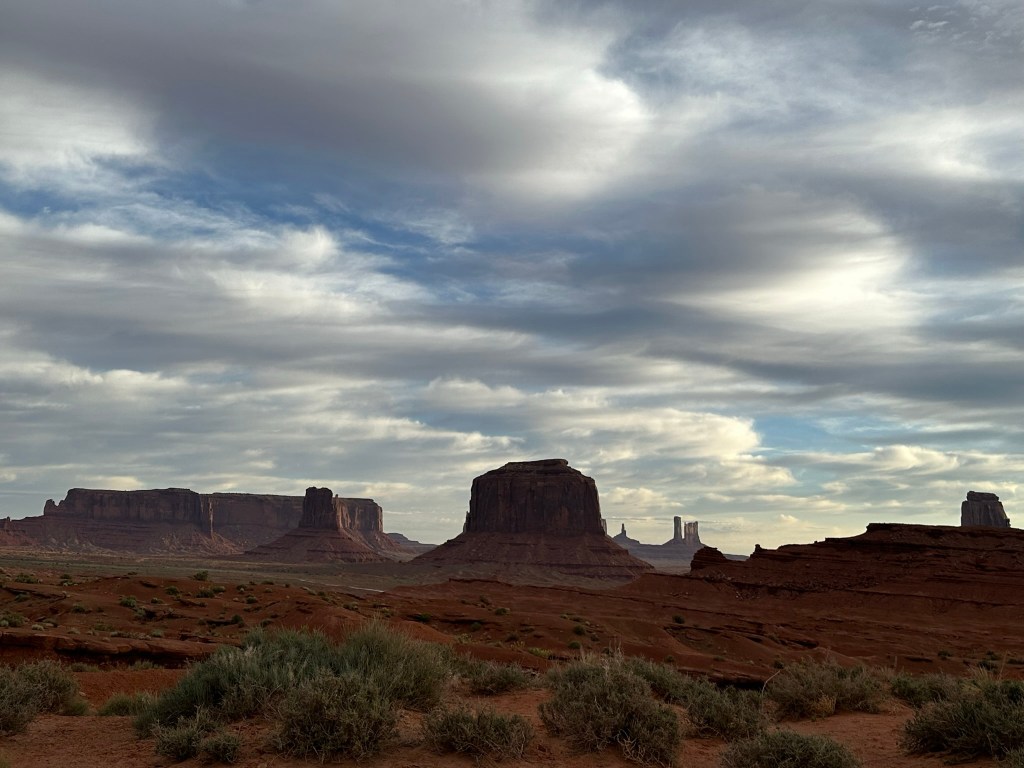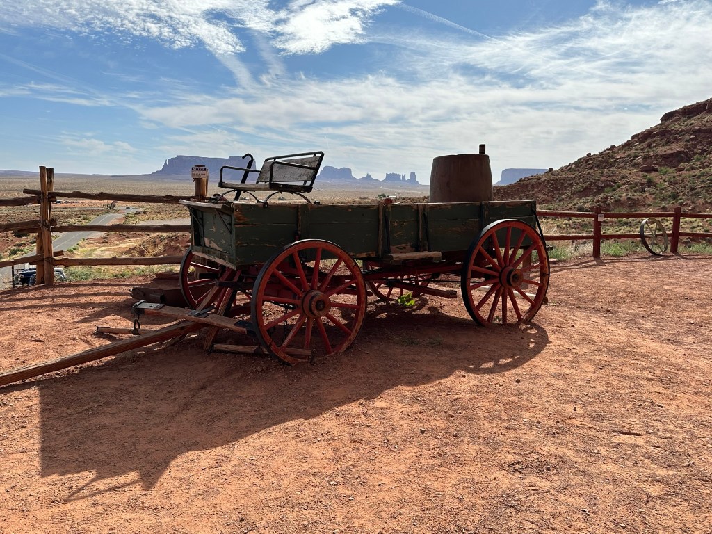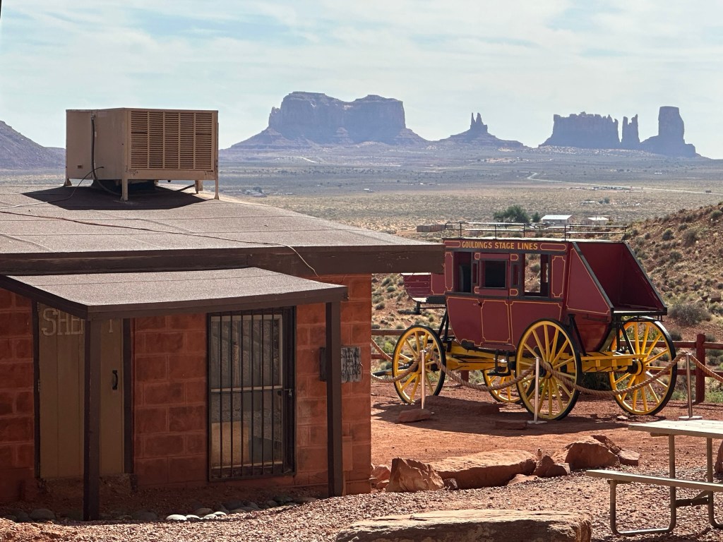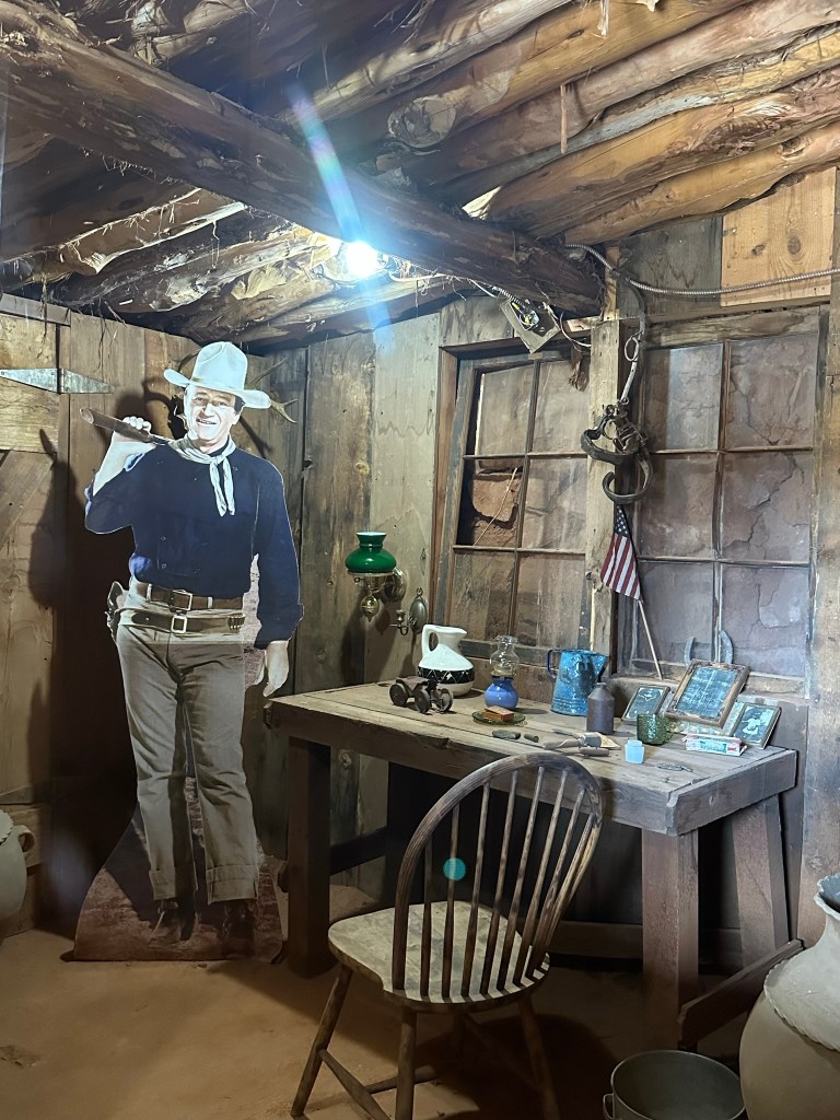 - Goulding’s Museum Stagecoach was our first stop and we got there about 9:20am. It’s about 4 miles away just outside entrance to the park. Goulding’s is a great spot to visit. The Stagecoach Museum was very cool and there is a lot of John Wayne history there, so now I have to watch, “She Wore a Yellow Ribbon” as well as John Ford’s Calvary Trilogy. Several other movies were filmed in Monument Valley and they have a tribute to those also. Fun fact; they weren’t all westerns either. Ever hear of Back to the Future? Yep, part of that was filmed here! They also have a lodge and campground. I think next time if I can stay a couple days I’d do the Rim Cabin in the park like I did this time however if nothing was available or only a one day stay I’d try staying at Goulding’s. The view of the Valley is spectacular! Here are some pictures from around and inside the museum. Lot’s of it is dedicated to the movies because the movie industry revived the area economically plus who doesn’t love the Duke?!