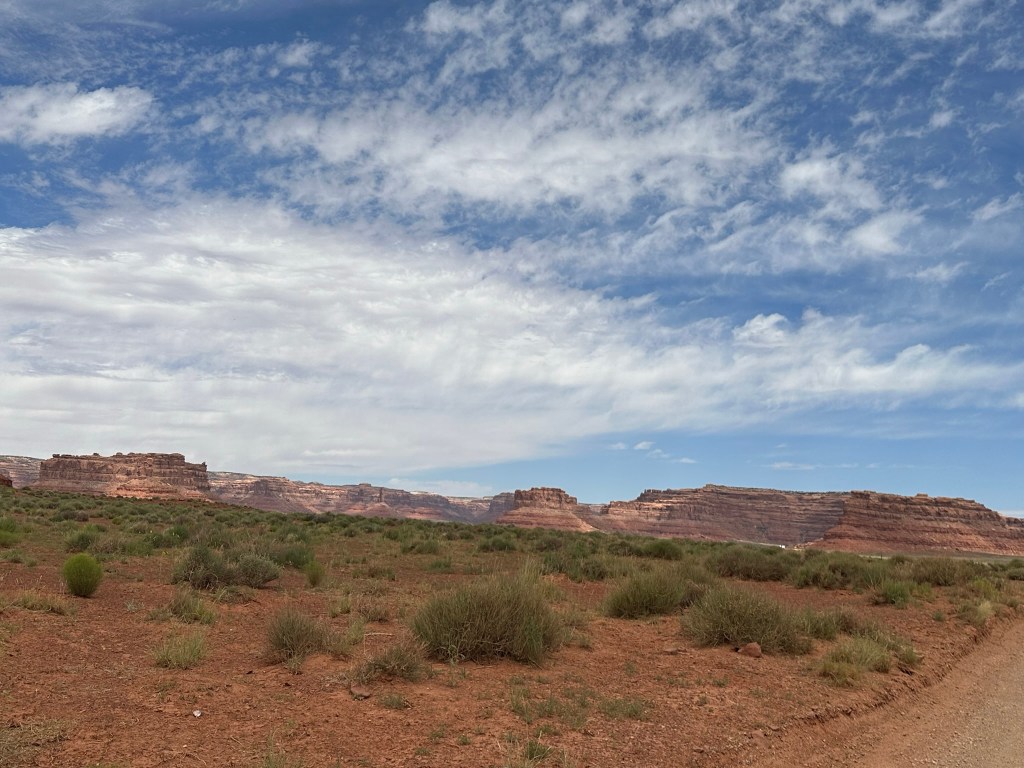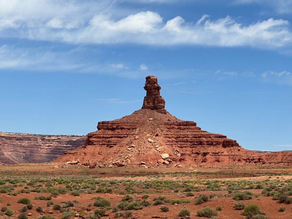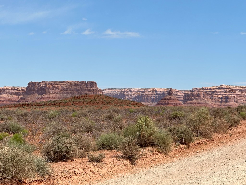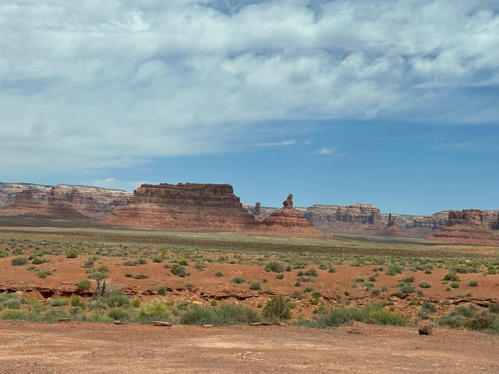 - Leaving Goosenecks we drove up the road to Valley of the Gods. This is a bumpy road that goes into the backcountry past some beautiful nature art. You have to see it and experience to believe it. We were just amazed at how much there was to see and how beautiful it was. Since it was BLM land you could boondock on it for free and several people were taking full advantage of the fact. I’m jealous! I really want to come back here and boondock / camp for a few days and enjoy the place. Again, be aware the road is bumpy so go slow and if there is a lot of rain don’t try it.