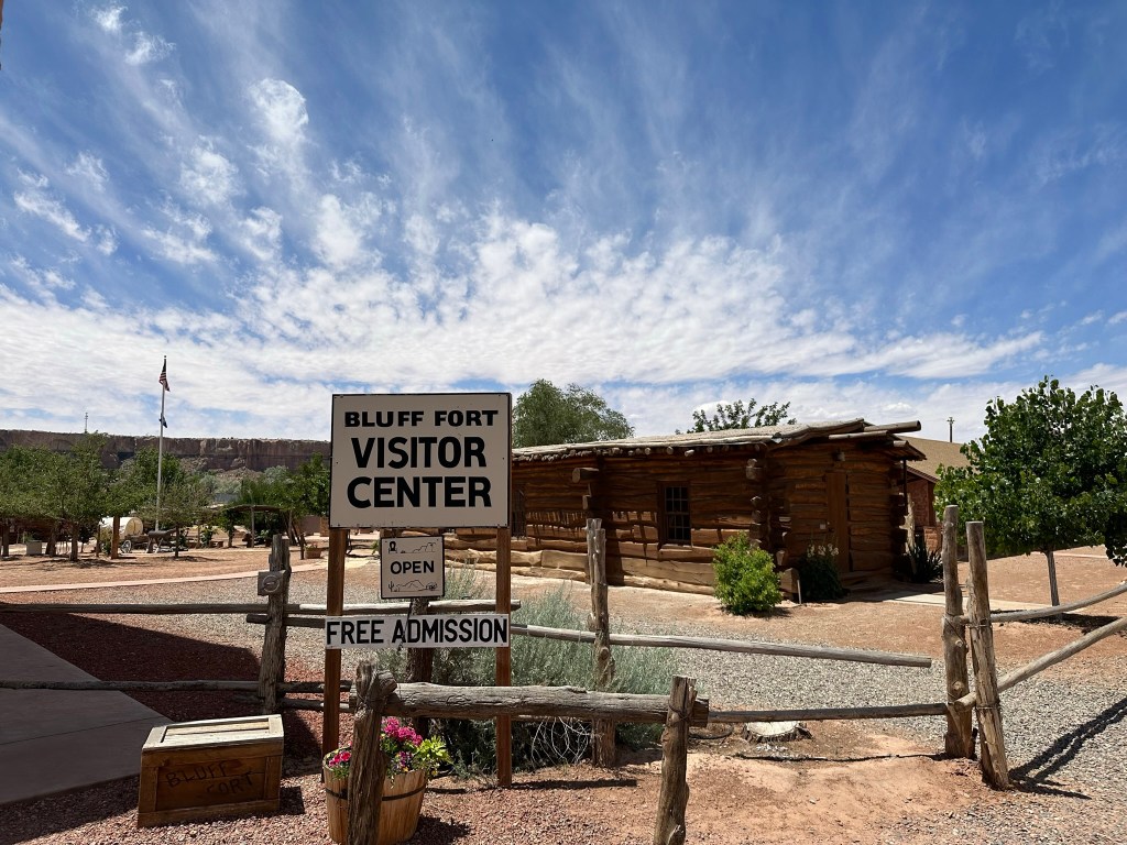 - With loads of regret that we couldn’t stay longer we moved on down the road to Bluff Fort. Again, the scenery on the drive is just amazing. Bluff Fort was established by Mormons back in 1888 is owned by a Mormon Foundation. It’s a beautiful place that is rich in history. The Hole in the Rock Expedition is an amazing story that speaks to just how touch people used to be and what you can accomplish when you have to. Just as an FYI Bluff Fort is not the original fort works. It is a recreation of the fort that has been done with historical accuracy.