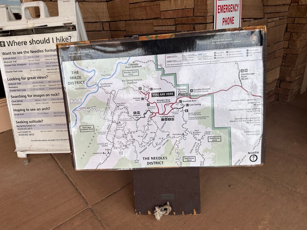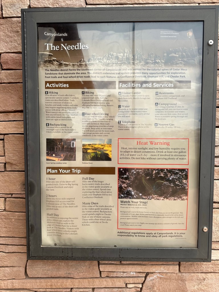 - Needles District Canyonlands is well worth the time to get there. The rock formations are absolutely crazy. The main drive through the park is only about 6 miles or so with a couple other branches but it’s worth it. Lot’s of hiking and cool stuff to look at. Next time I go there instead of the couple hours we spent I’d make sure and camp there for a couple days. No accommodations are onsite (except campground) so come prepared.