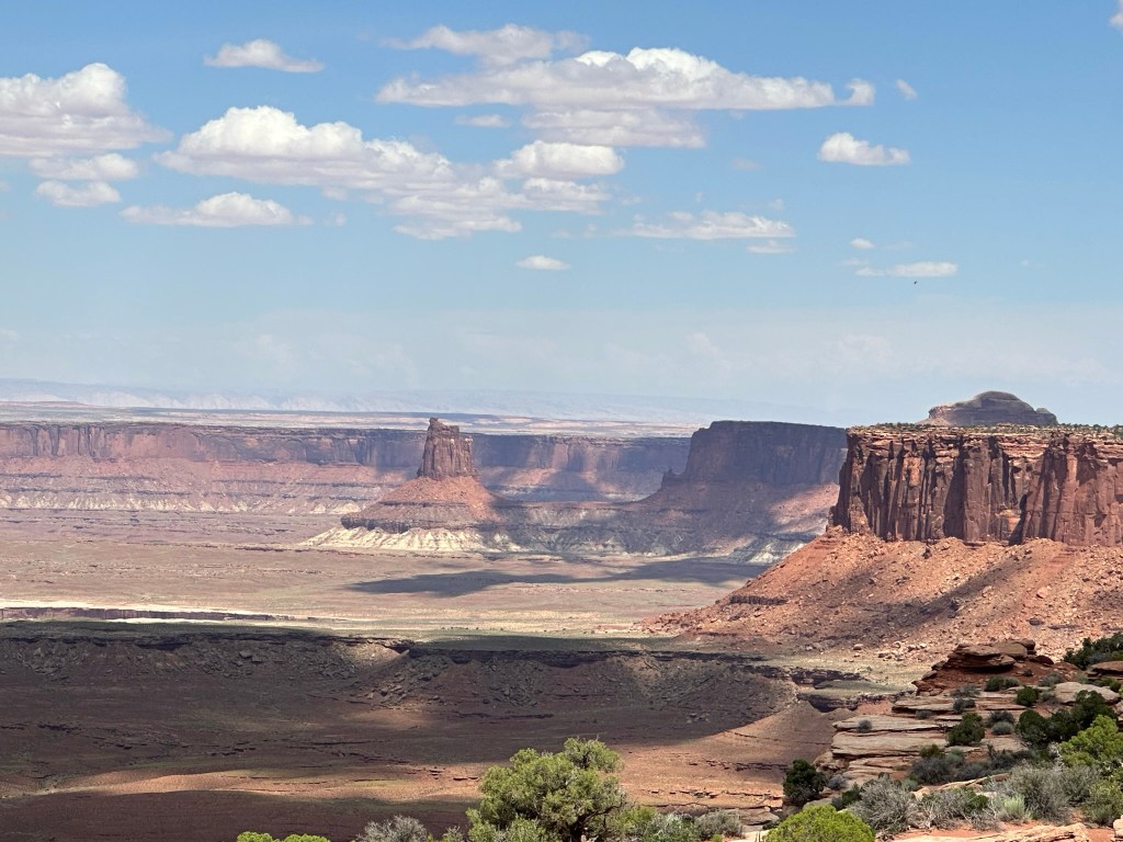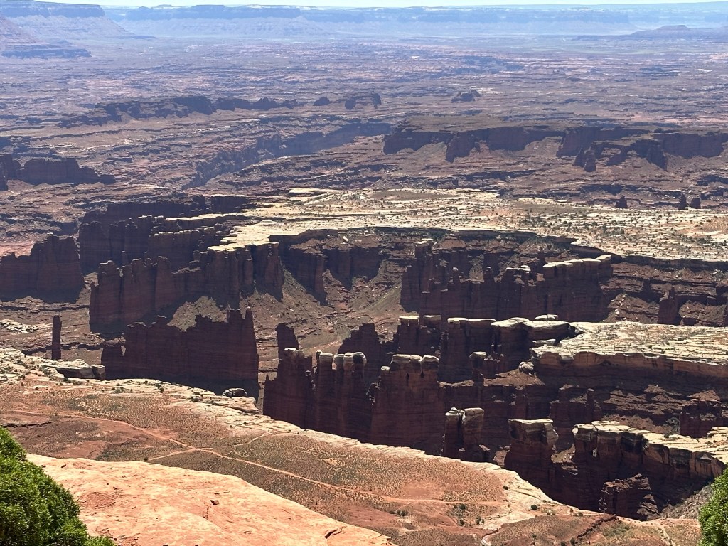 - Driving back from Grand View Point we stopped at Buck Canyon Overlook and then drove out a little ways to see the Green River Overlook. From there we headed back towards the visitor center and made one last stop to get a view of the four-wheel-drive path (it’s called Shafer Trail Road) that you can drive. It looks like a really fun path to drive and potentially camp out on for a while.