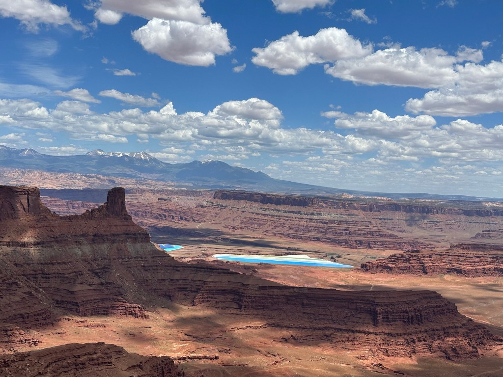 - I didn’t remember seeing the Solar Evaporation Ponds last time I was here in 2022 however you can’t miss them when you’re looking out from the Visitor’s Center. They are for a mine owned by Intrepid Potash and used to mine the potassium chloride which is in turn transformed into plant fertilizer. I’ll post a picture below of the plaque so you can see the process.