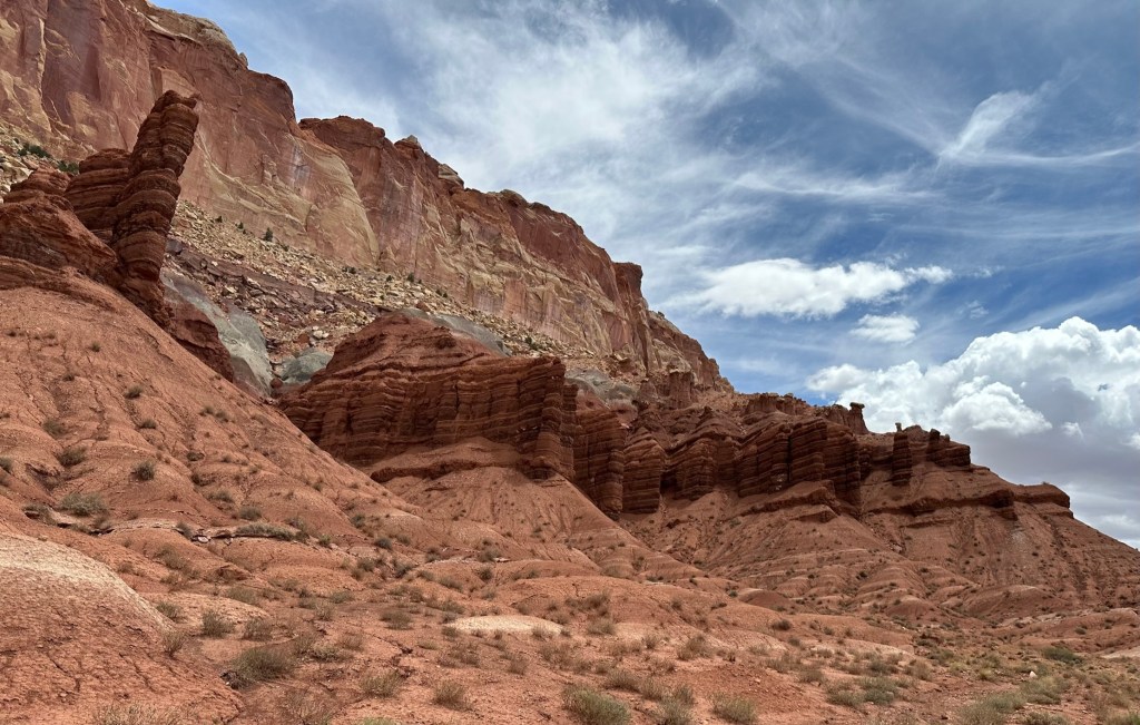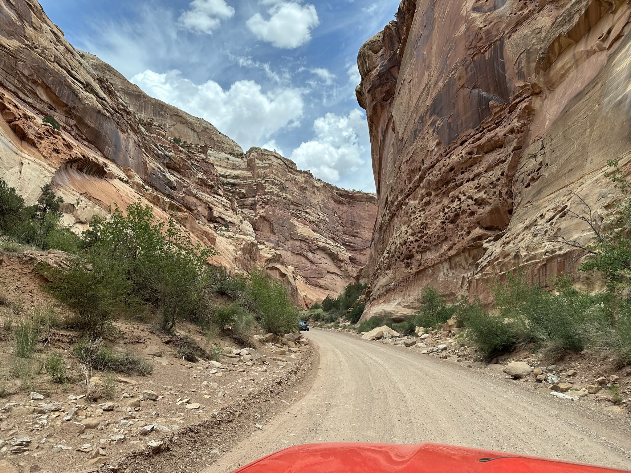 - Make sure you take the time to drive Capitol Gorge if you have any extra time at all. You won’t be disappointed! The views are breath taking. As an FYI Capitol Gorge used to be an old road connecting towns however since it washed out after every heavy rain they eventually stopped using it and built a different road. The takeaway here is to NOT be on this road if there is a chance it is going to rain! There is a hiking trail you can do at the end of the road however that also was pretty crowded and we couldn’t even find a parking spot.