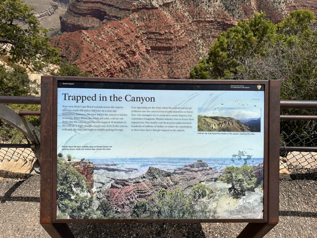 - Keep on walking afterwards down to Cape Royal which provides yet more great views. I realize I’m not saying much here but I’ve literally ran out of adjectives for how majestic this place is. The pictures just can’t do it justice. Oh yes, the “fog or steam” you see in the background of some of the pictures is smoke from the controlled burns they were doing while we were there.