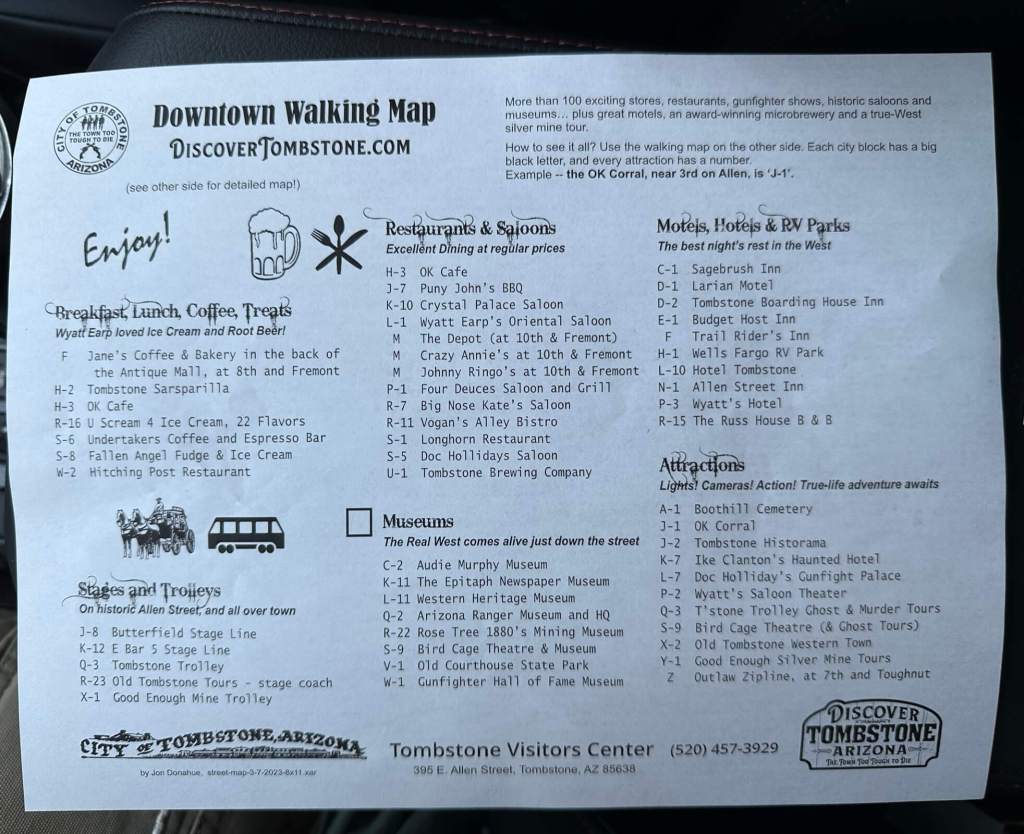 - Before we left town I needed a little pick me up so we stopped a Undertaker’s Expresso Bar and ended up meeting the owner. Cool coffee shop and owner. I really liked it. I had him make me a funky coffee of the day. Ended up being carmel, vanilla, coconut, and some cinnamon and it tasted great! The old place used to be the undertakers so lot of history went down in that place. Almost all of it was original which is important as some of the buildings in town had burned down and then been rebuilt. I don’t have a picture of the place however I highly recommend stopping in here. I do have a map though! lol.